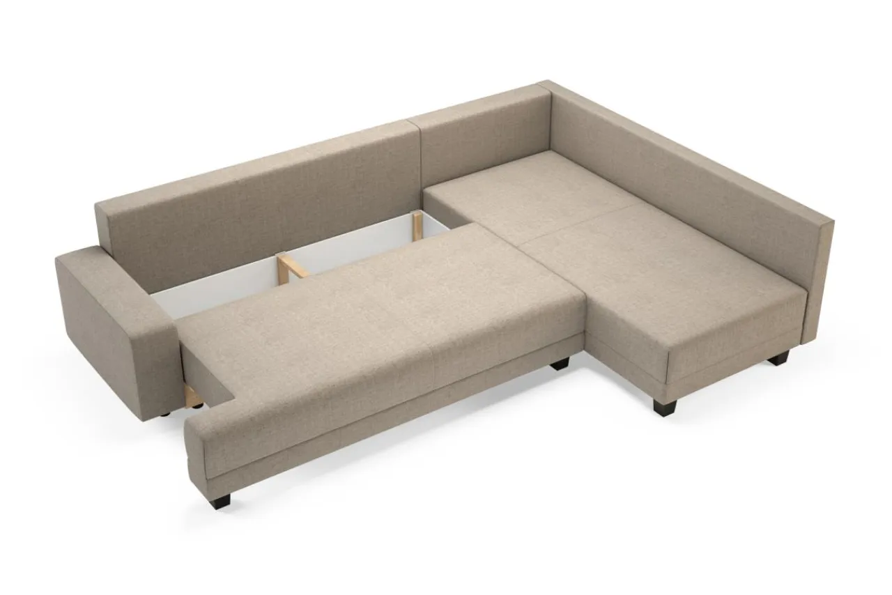 Pojedynczy pojemnik na pościel umieszczony został pod siedziskiem narożnika.