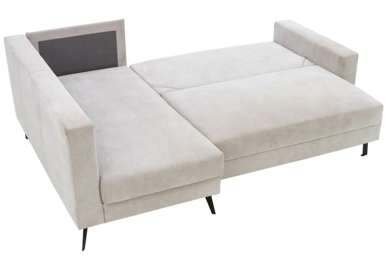 Narożnik jest wyposażony w funkcję z mechanizmem ułatwiającym rozkładanie. Komfort spania jest taki sam po obu stronach dzięki sprężynom falistym.