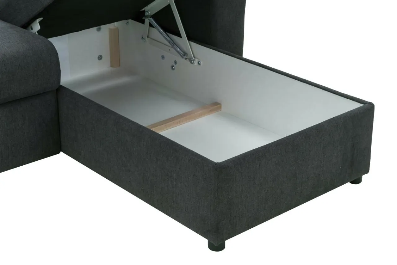 Siedzisko w narożniku wypełniono sprężynami falistymi z dodatkiem pianki osiągając właściwy komfort wypoczynku. Funkcja spania i pojemnik na pościel będą przydatne kiedy zechcemy przenocować naszych gości. Rozkładanie jest bardzo proste i nie wymaga żadnych skomplikowanych zabiegów. Narożnik przeszyto miękką w dotyku tkaniną typu mikrofibra o nazwie ENJOY. Zapewnia ona ograniczone wchłanianie płynów, ułatwia dbanie o czystość.