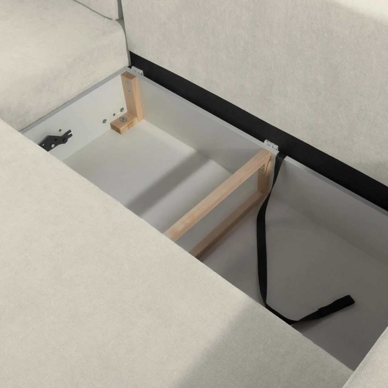 - W pojemniku pod siedziskiem znajdziesz miejsce na komplet pościeli i inne domowe tekstylia.