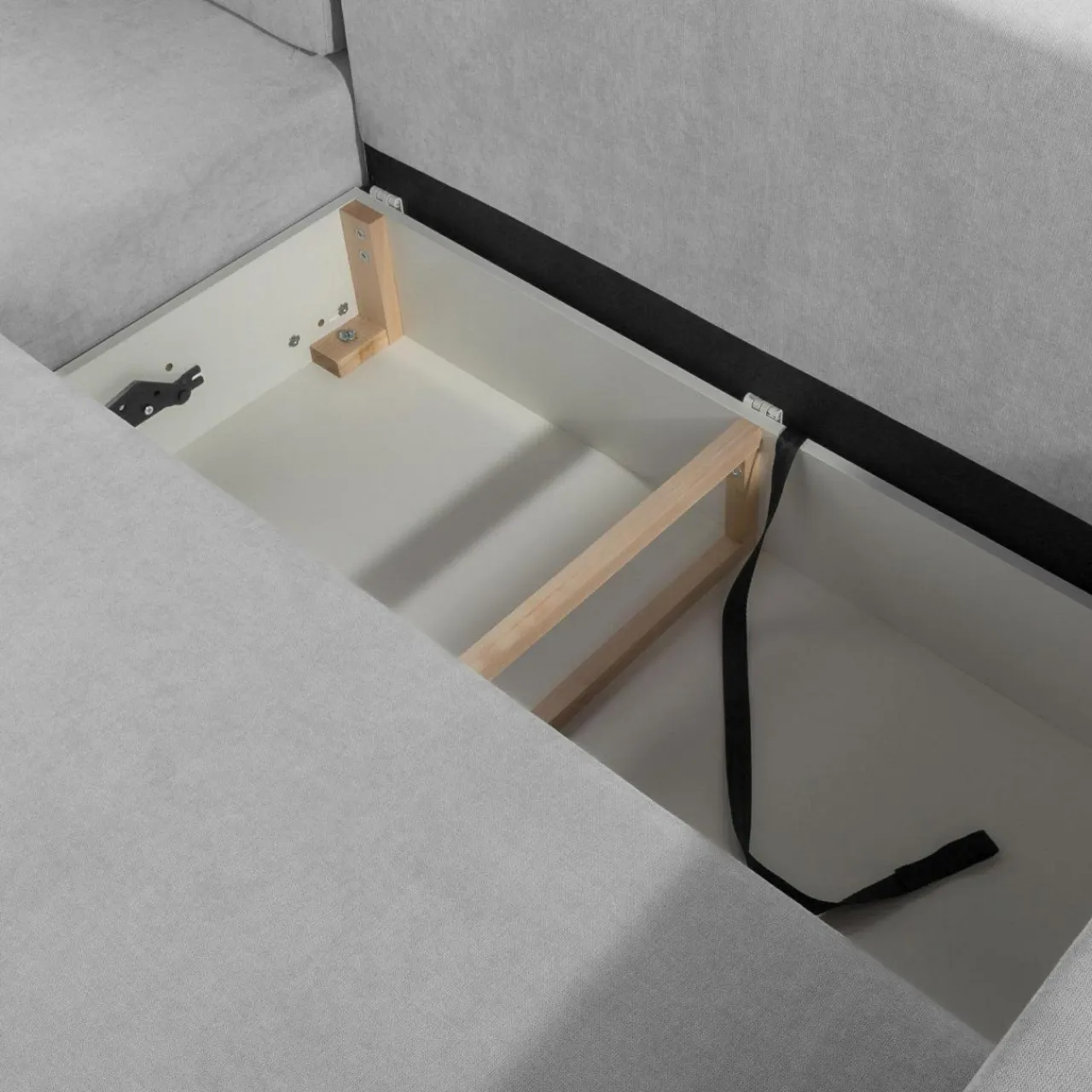 - W pojemniku pod siedziskiem znajdziesz miejsce na komplet pościeli i inne domowe tekstylia.