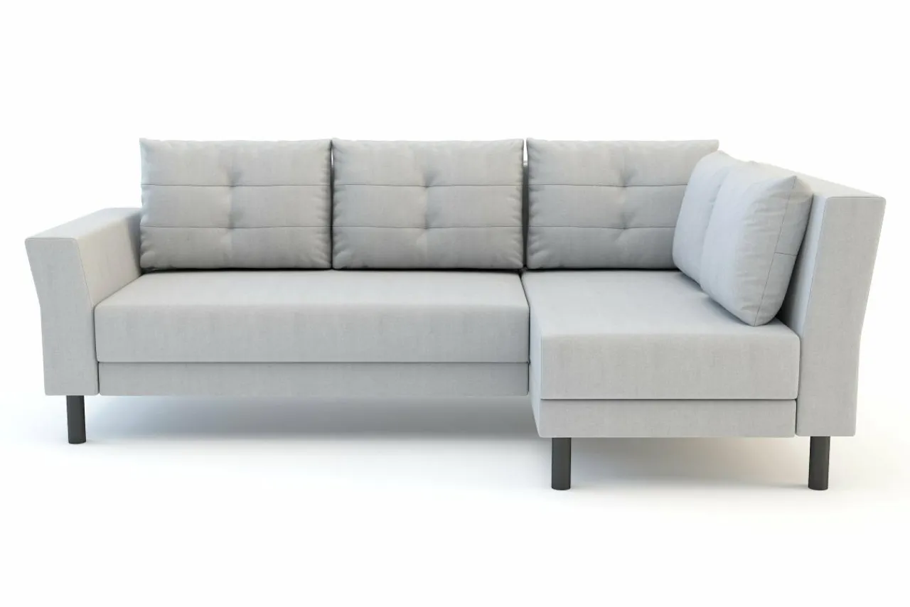 - Zarówno siedzisko, jak i oparcie są wypełnione sprężynami falistymi i pianką. Dzięki temu powierzchnia wypoczynkowa po rozłożeniu narożnika jest tak samo komfortowa.