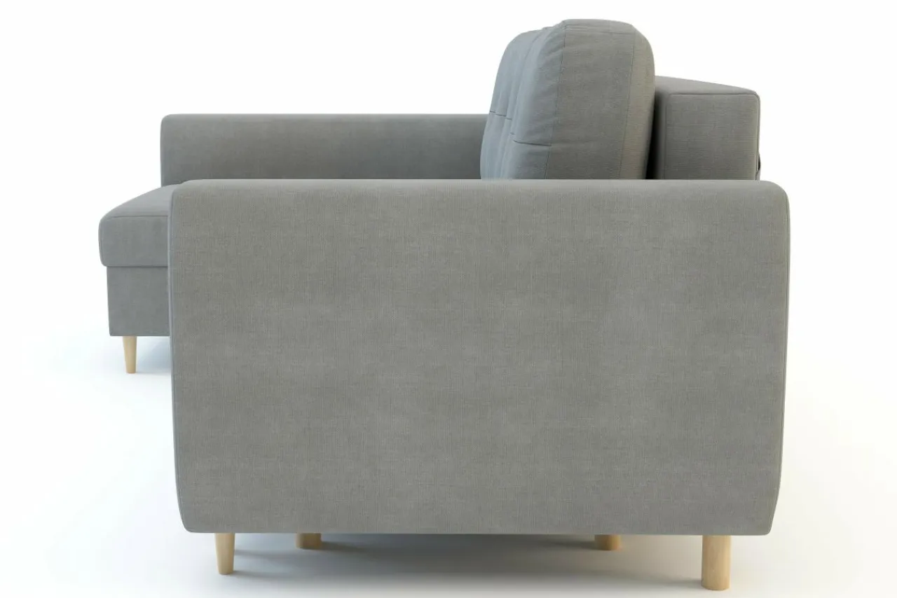 Szara kolorystyka tkaniny sprzyja wyciszeniu. Przyjemna w dotyku tkanina pozwala zatopić się w siedzisku i wypoczywać wygodnie w rodzinnym gronie.