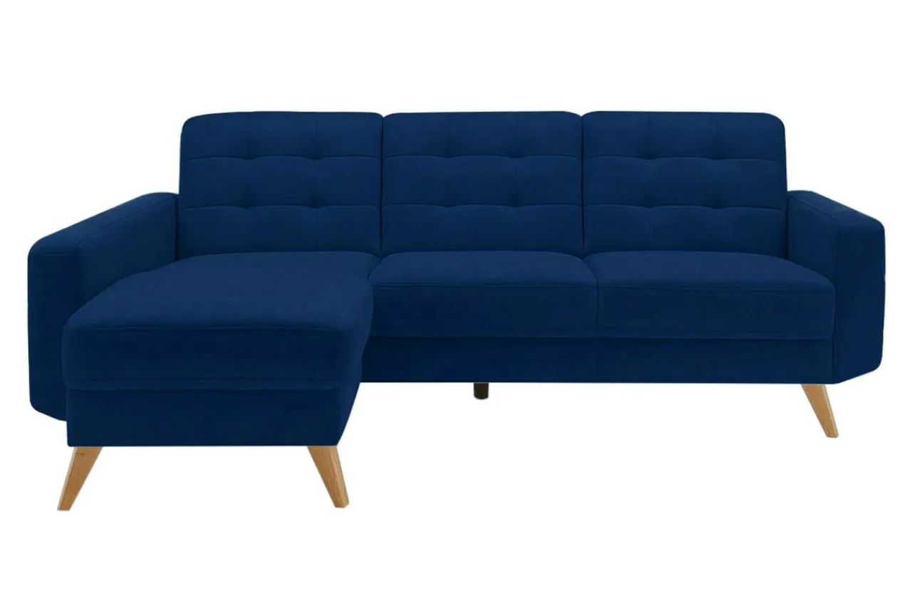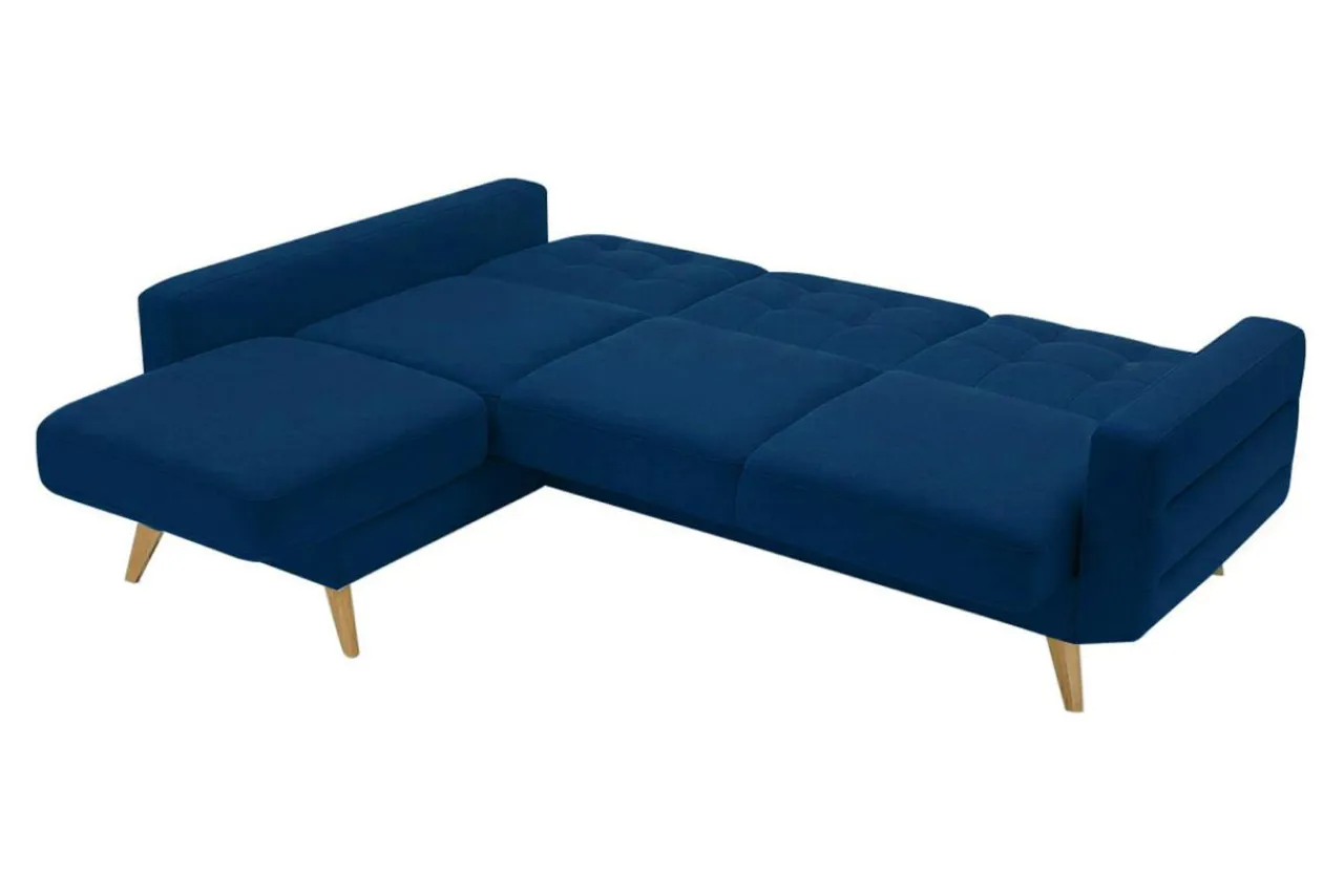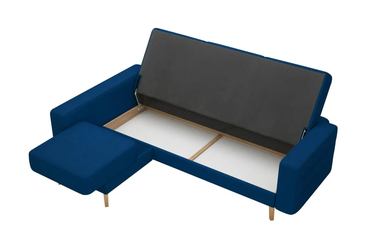 - Wysokie nóżki w kolorze dąb natura, pozwolą Ci sprawnie odkurzyć przestrzeń pod narożnikiem, bez zaawansowanych umiejętności akrobatycznych.