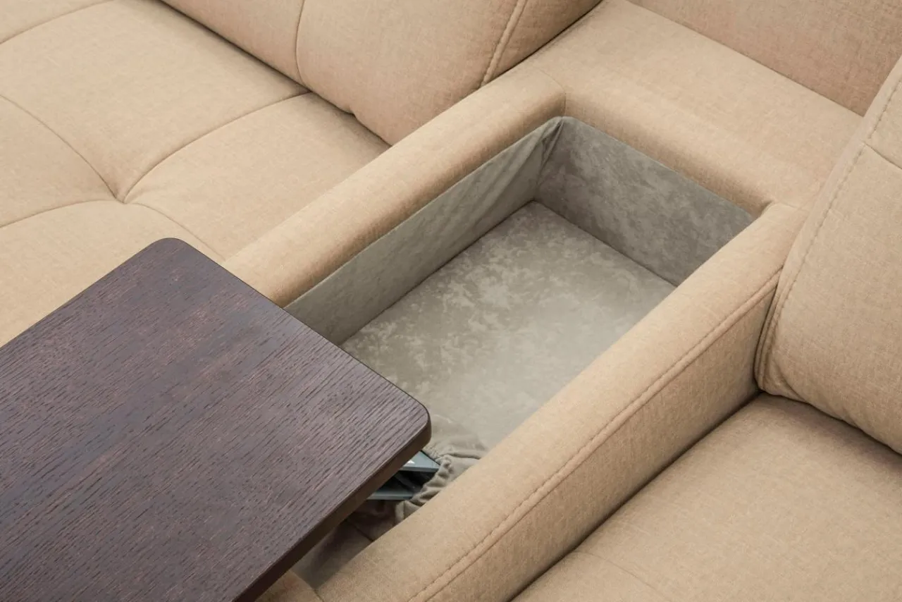 - Pojemnik między siedzeniami narożnika CANTATA przechowa Twoje piloty i gadżety przed rączkami małych poszukiwaczy skarbów.