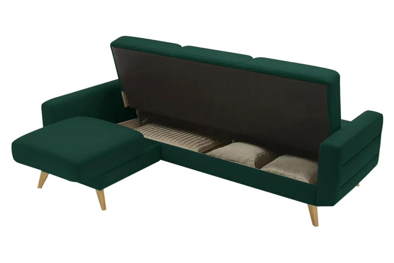 - Mechanizm wersalkowy pozwala na szybkie przekształcenie narożnika w okazjonalne miejsce do spania.