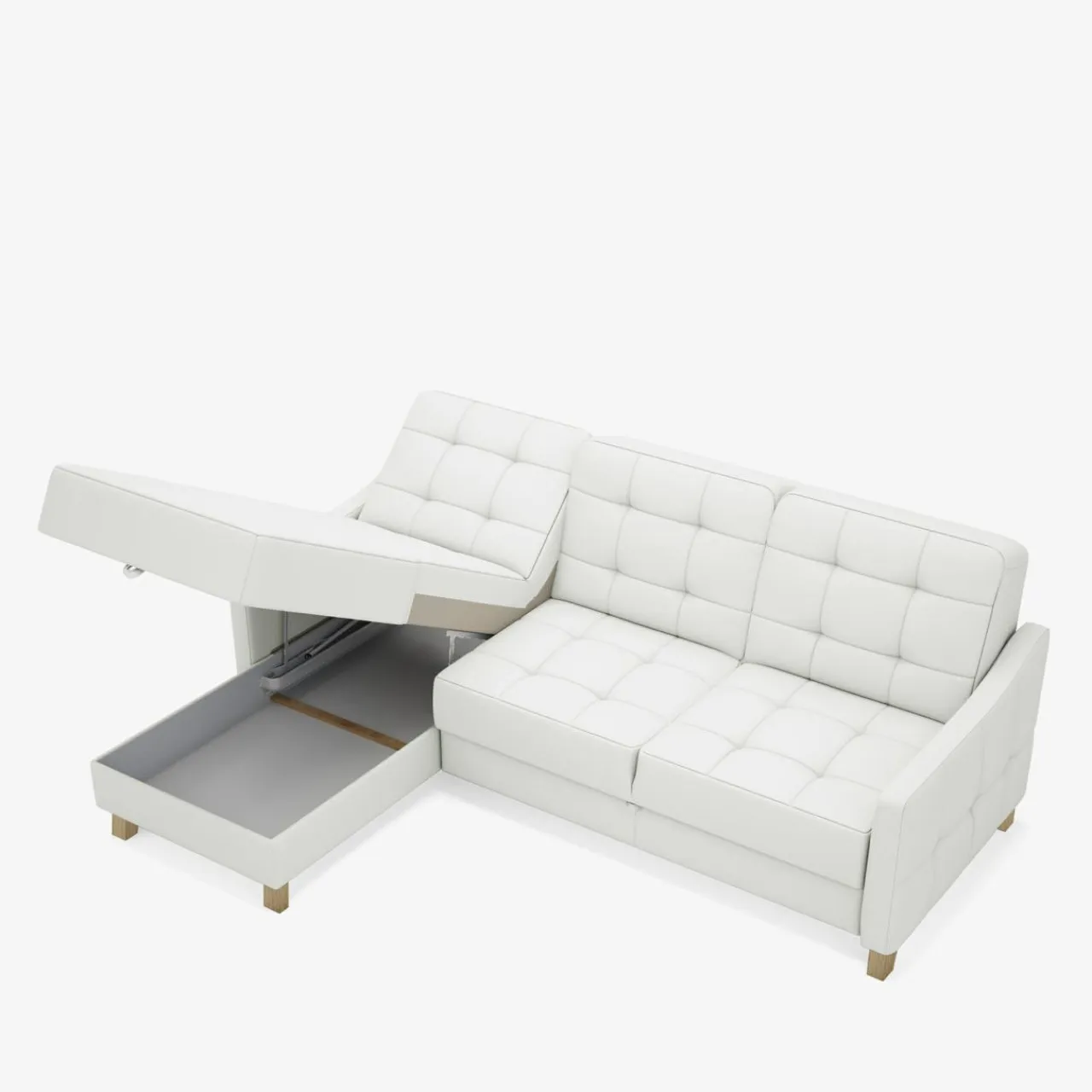 Funkcja spania nie wymaga odsuwania narożnika od ściany i jest łatwa w użytkowaniu, wbudowane weń sprężyny faliste i dodatek pianek sprawi, że jest bardziej wygodna.