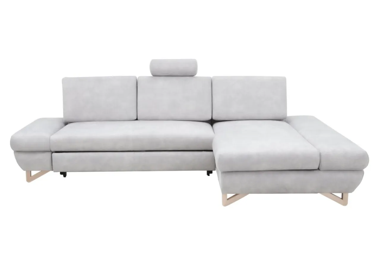 Narożnik AVESTA został przeszyty tkaniną SALLY – materiałem na bazie pluszu, miękkim i miłym w dotyku. Został wykonany w technologii Easy Clean, która ułatwia dbanie o czystość. Nogi mebla są drewniane, w kolorze dąb sonoma.
