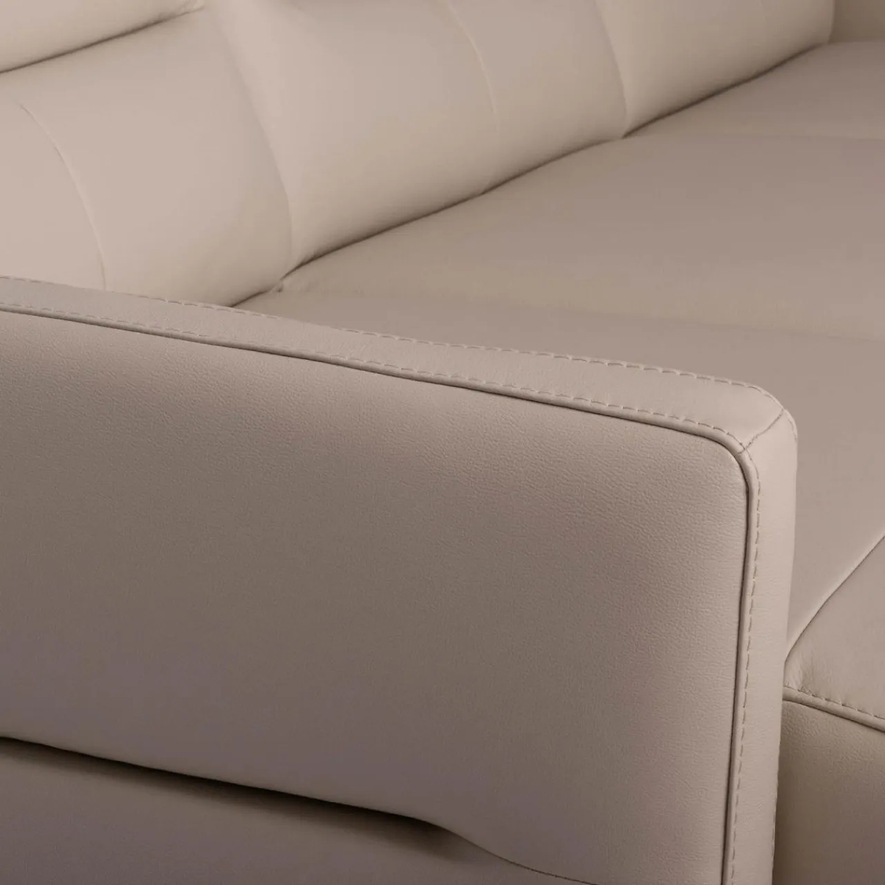 - Narożnik obity jest mixem skór (naturalna i ekologiczna) w kolorze jasnobeżowym..