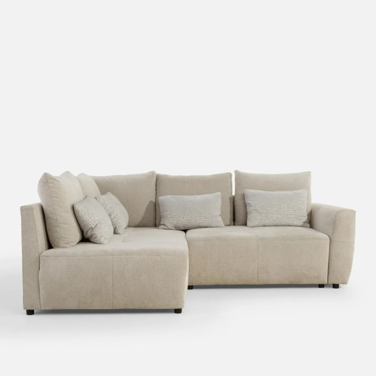 - Pojemnik pod siedziskiem to dodatkowa przestrzeń, którą wykorzystasz na pościel i inne domowe tekstylia. Dostęp do niego uzyskasz podczas rozkładania narożnika.