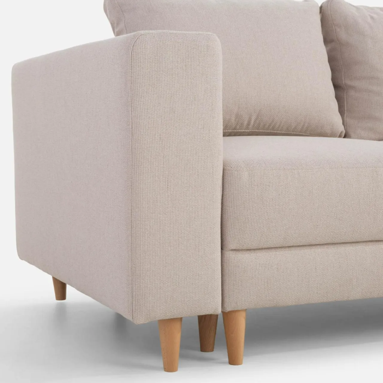 Prosta linia narożnika PERA wpisze się w wystrój nowoczesnego salonu. Wysokie nóżki z drewna nadadzą lekkości, dzięki czemu narożnik nie przytłoczy wnętrza.