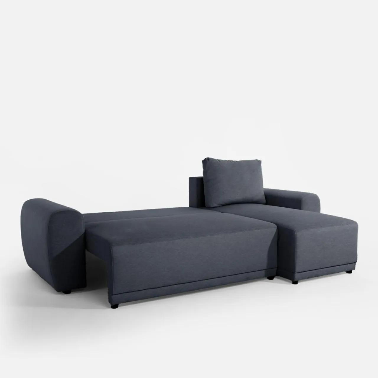 - W pojemniku pod siedziskiem wygodnie przechowasz pościel, koce lub inne domowe tekstylia. Dostęp do niego uzyskasz podczas rozkładania narożnika.
