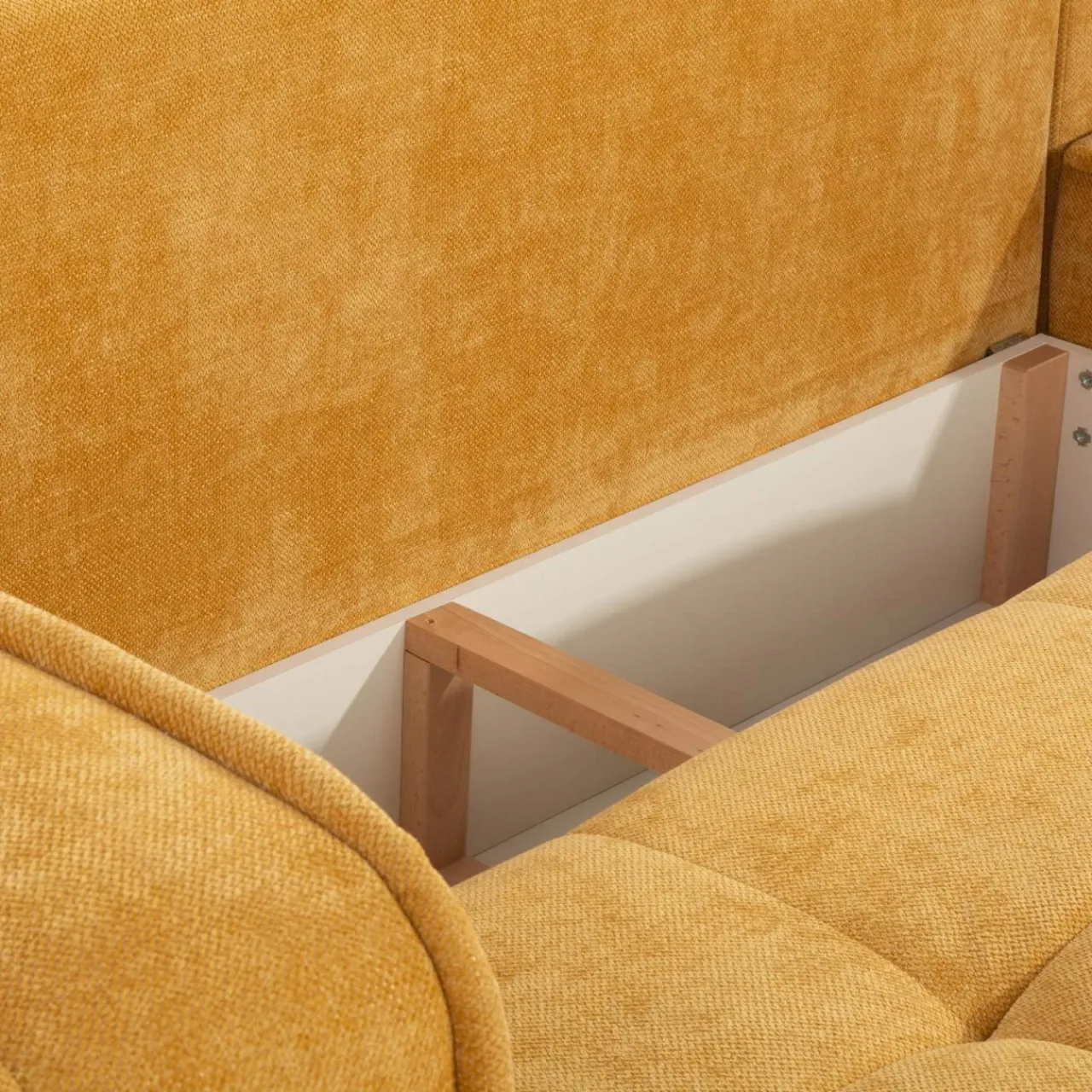 - Pojemnik pod siedziskiem zapewnia dużo miejsca do przechowywania pościeli i koców.