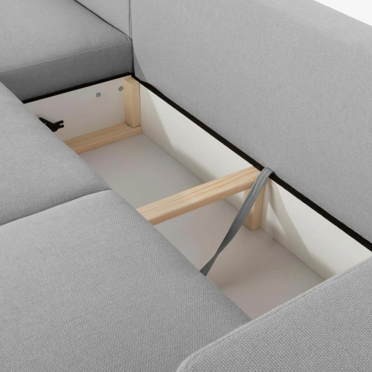 - Pojemnik pod siedziskiem to dodatkowa przestrzeń na pościel i inne domowe tekstylia.