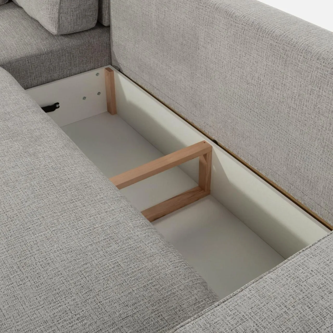 - Pojemnik pod siedziskiem to dodatkowa przestrzeń na pościel i domowe tekstylia.