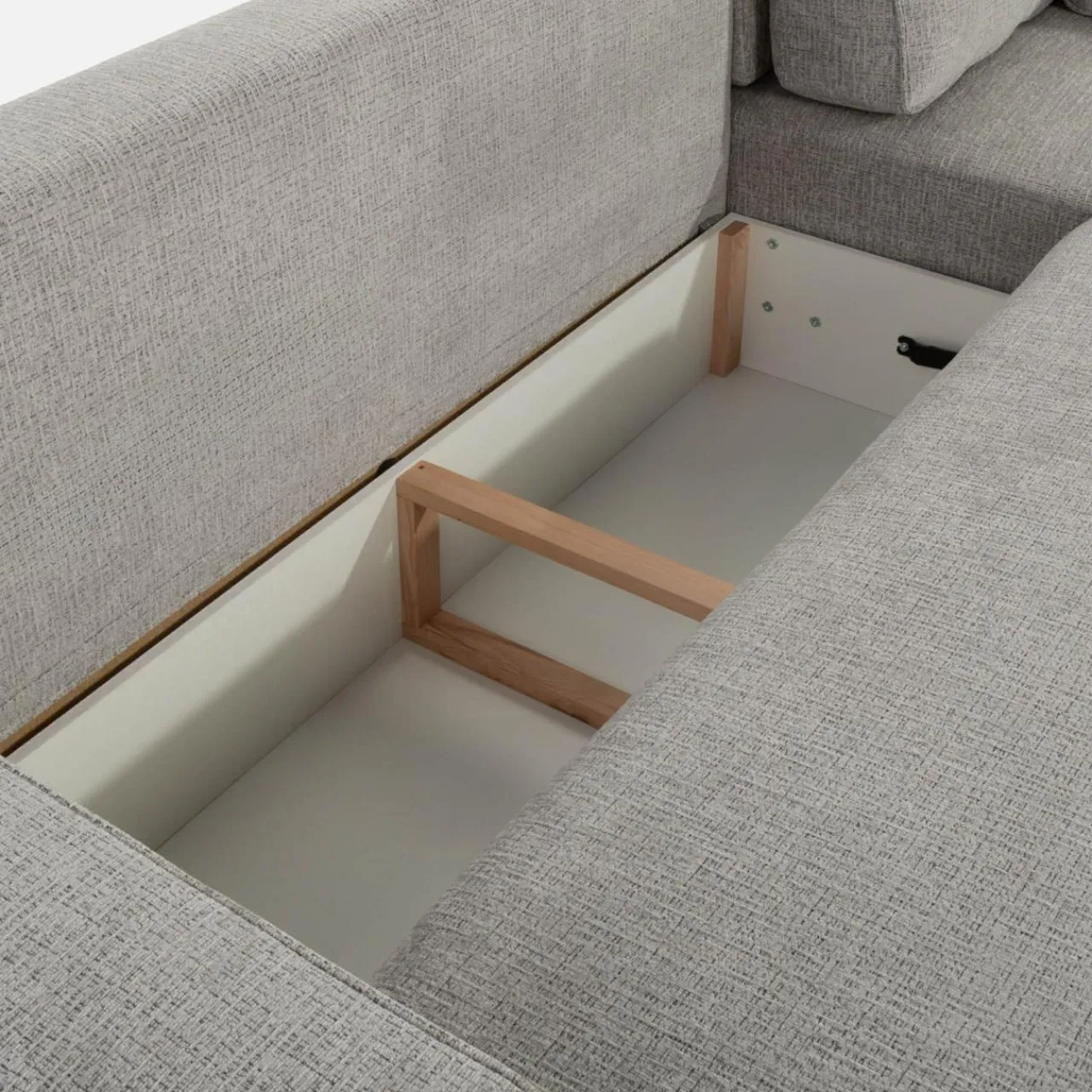 - Pojemnik pod siedziskiem to dodatkowa przestrzeń na pościel i domowe tekstylia.