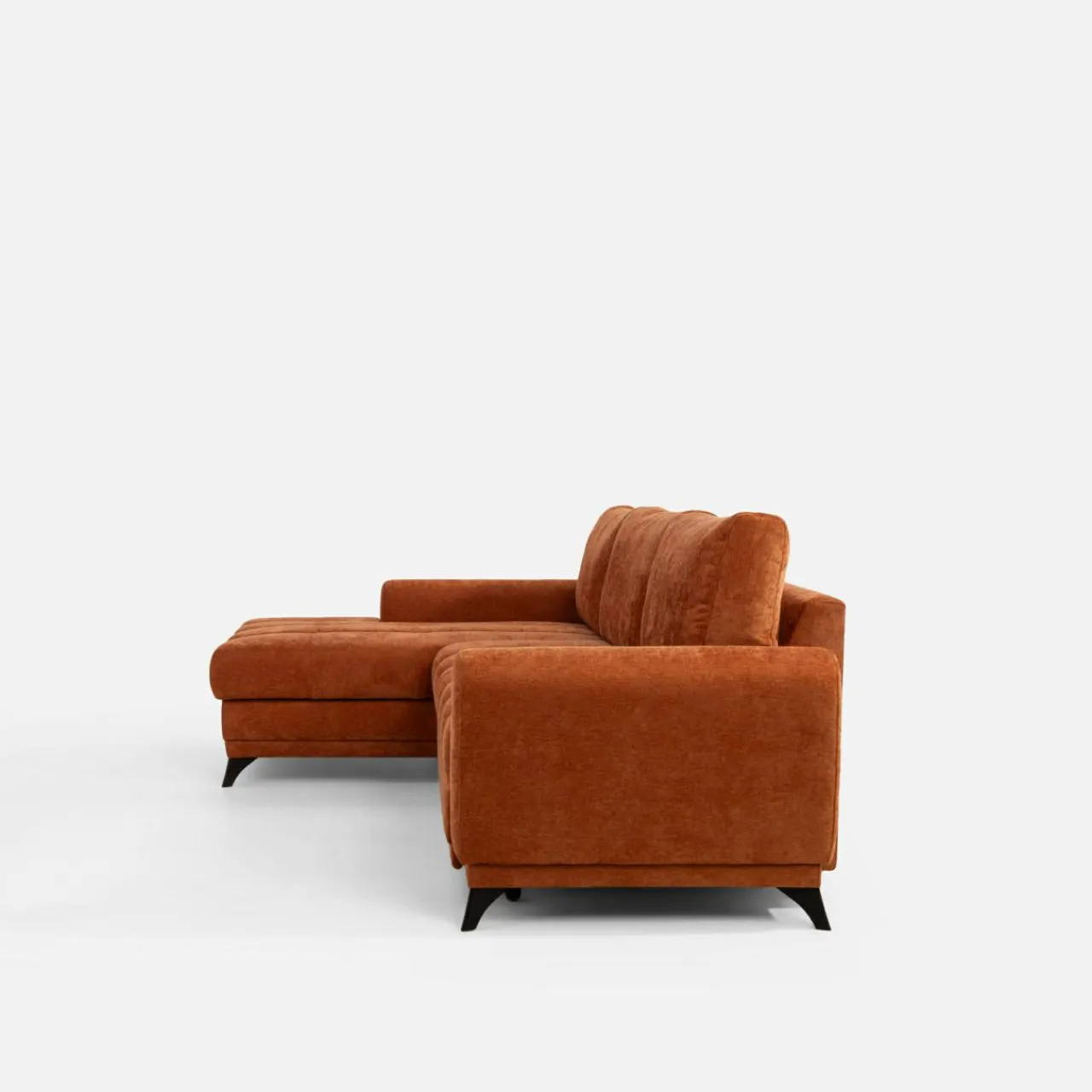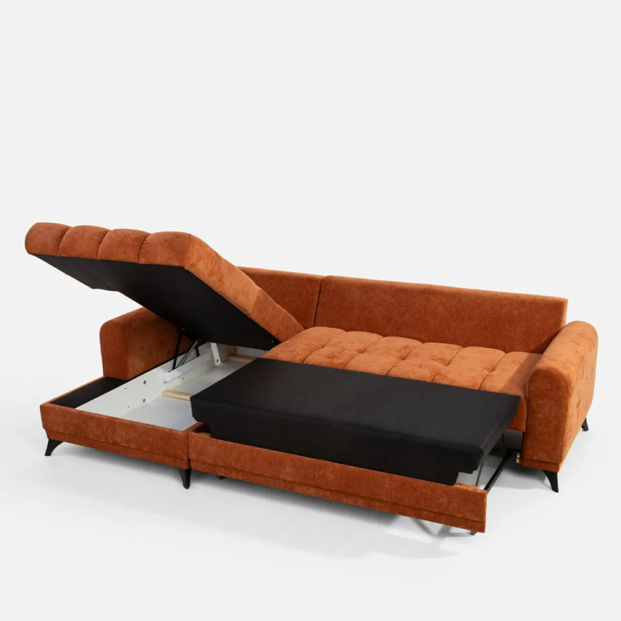 - Pojemnik w leżance to przestrzeń na komplet pościeli lub inne domowe tekstylia. Będziesz mieć dostęp do niego, nawet jeśli narożnik będzie rozłożony.
