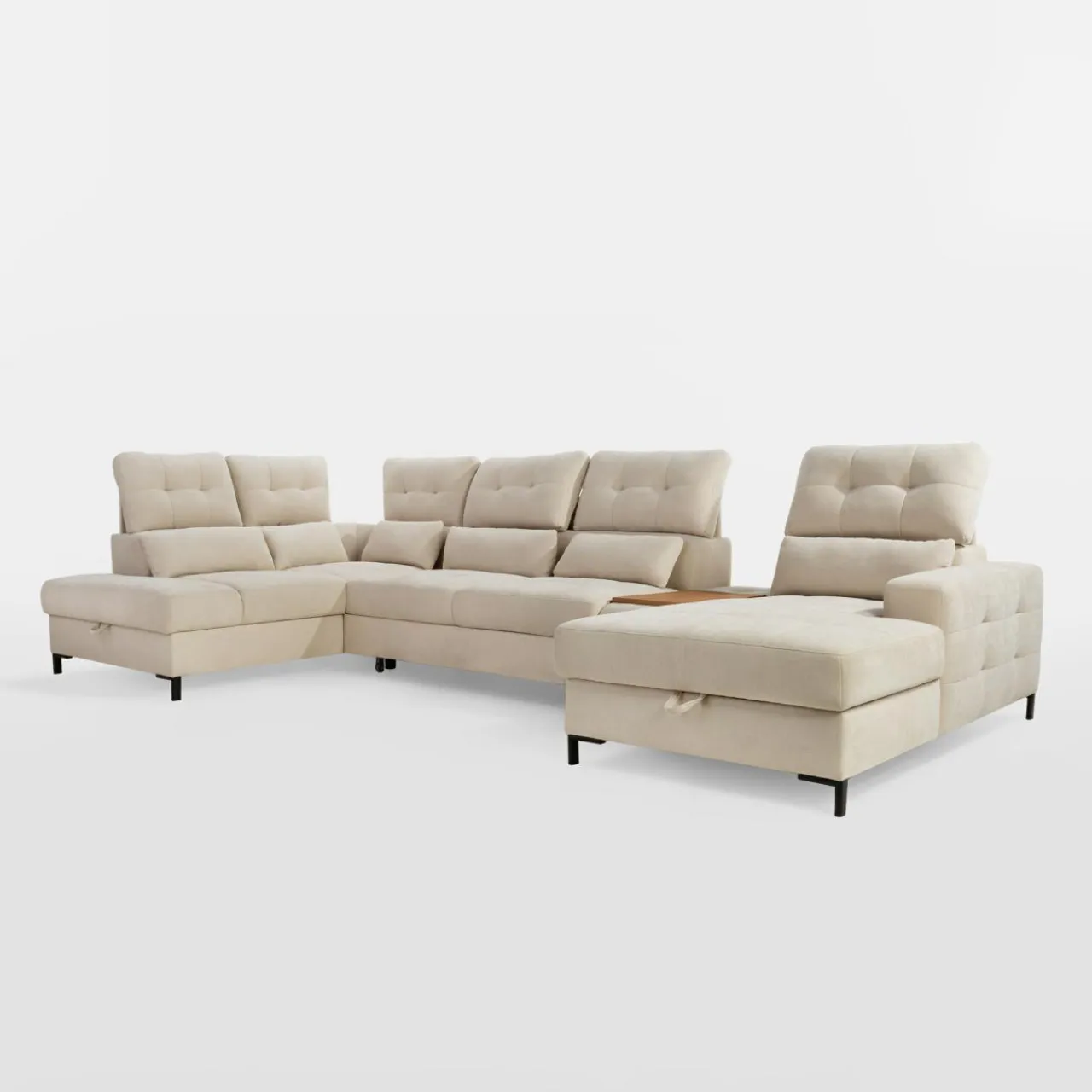 Chcesz stworzyć w salonie strefę domowego relaksu? Narożnik BONITO posiada 2 leżanki i barek, który umili każde rodzinne spotkanie.