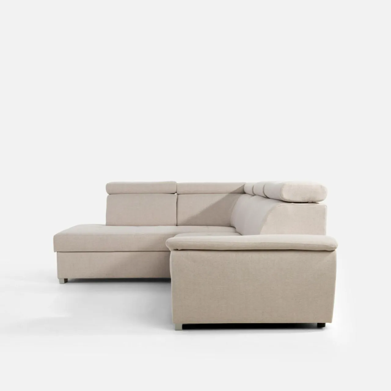 Cenisz sobie wygodę? Narożnik LUTON z regulowanymi zagłówkami stanie się idealnym miejscem na rodzinny maraton filmowy. Beżowy kolor doda ciepła do wnętrza urządzonego w stylu nowoczesnym.