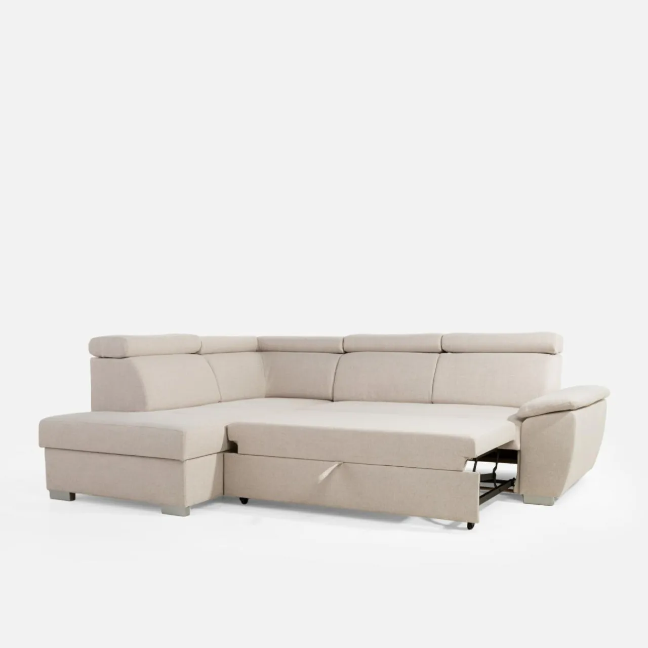 - Pojemnik w leżance da Ci przestrzeń na pościel i inne domowe tekstylia. Możesz z niego korzystać nawet po rozłożeniu narożnika.