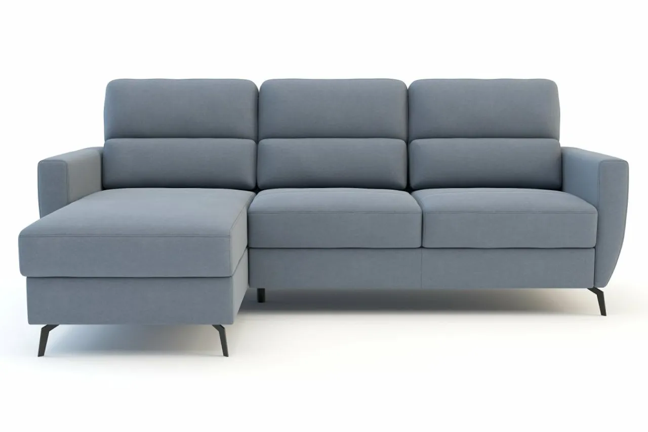 Narożnik rozkłada się za pomocą systemu typu delfin. Wystarczy, że wysuniesz wmontowaną w siedzisko szufladę i podniesiesz do góry dodatkowy element.