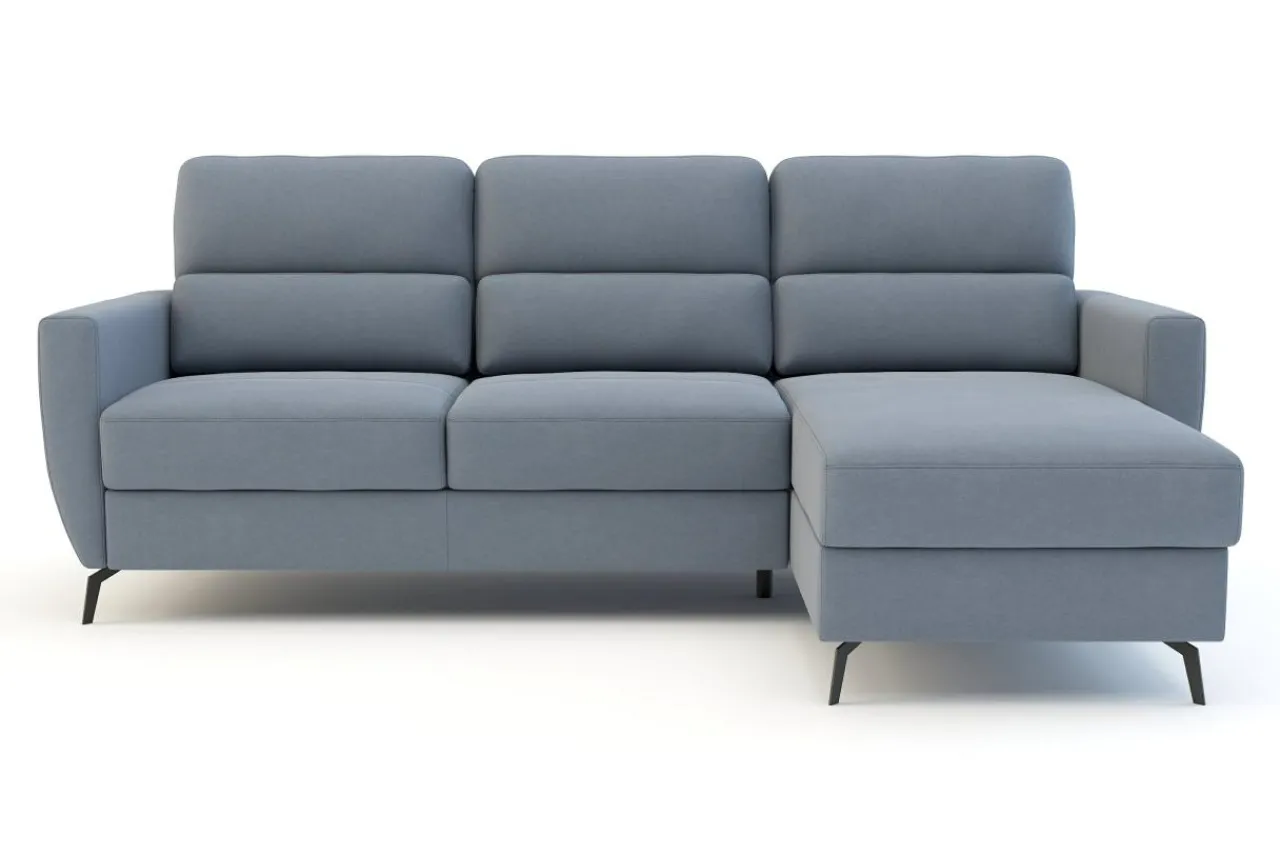 Narożnik rozkłada się za pomocą systemu typu delfin. Wystarczy, że wysuniesz wmontowaną w siedzisko szufladę i podniesiesz dodatkowy element.