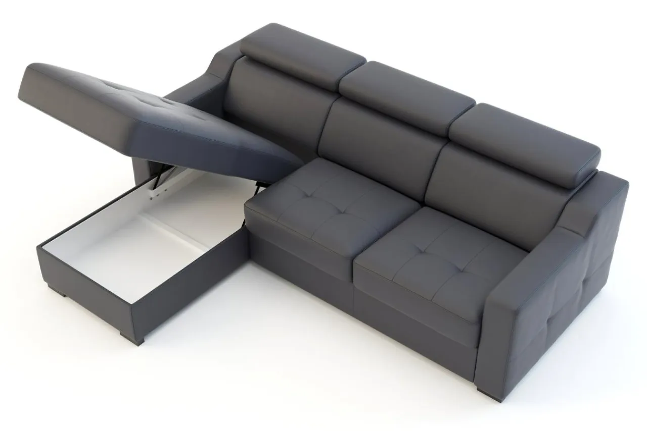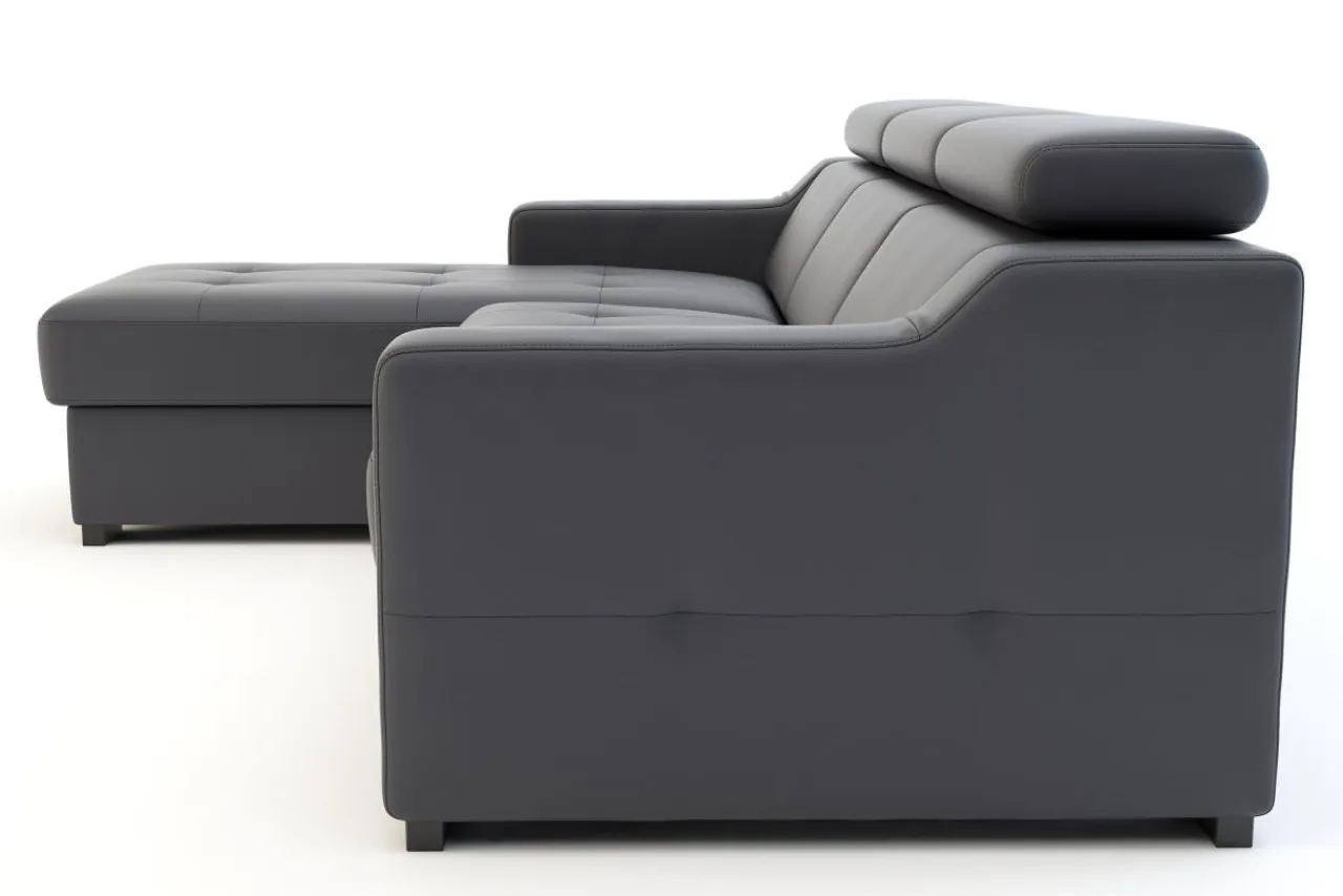 Narożnik KOBE posiada regulowane zagłówki, które podnoszą komfort wypoczynku. Dzięki nim, każda osoba odpoczywająca na narożniku, może dostosować układ oparcia odpowiednio do własnych potrzeb.