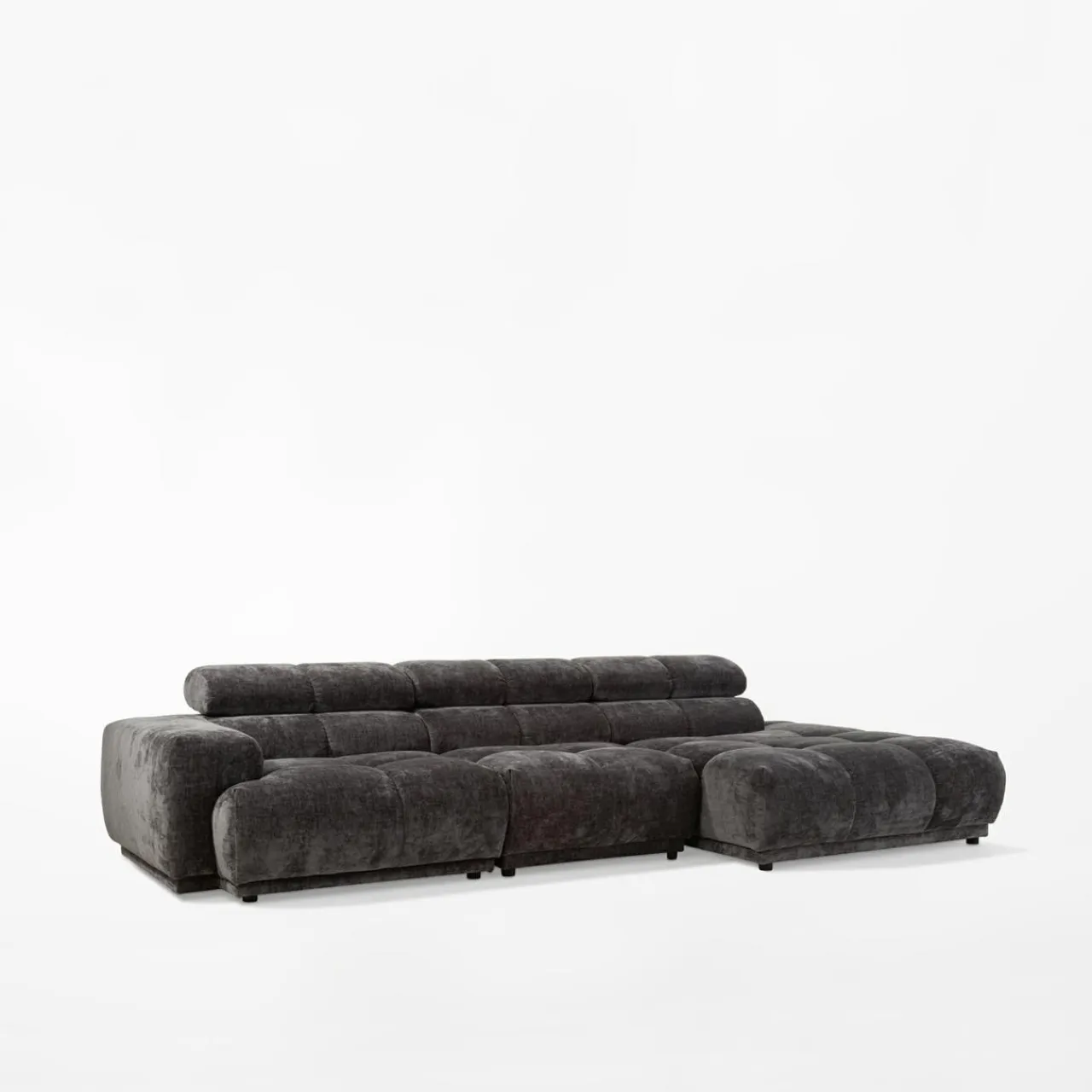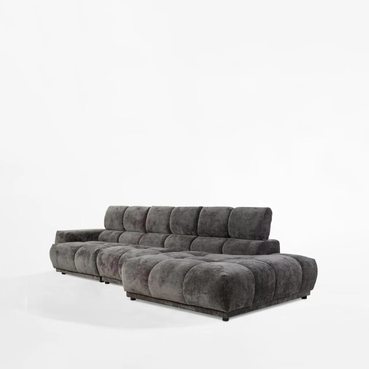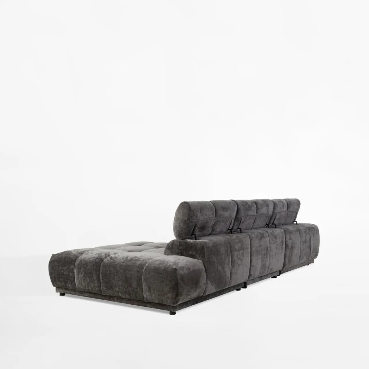 Stwórz elegancką atmosferę w salonie z narożnikiem CHANI. Ciemnoszary kolor tapicerki wpasuje się w minimalistyczne i nowoczesne wnętrza.