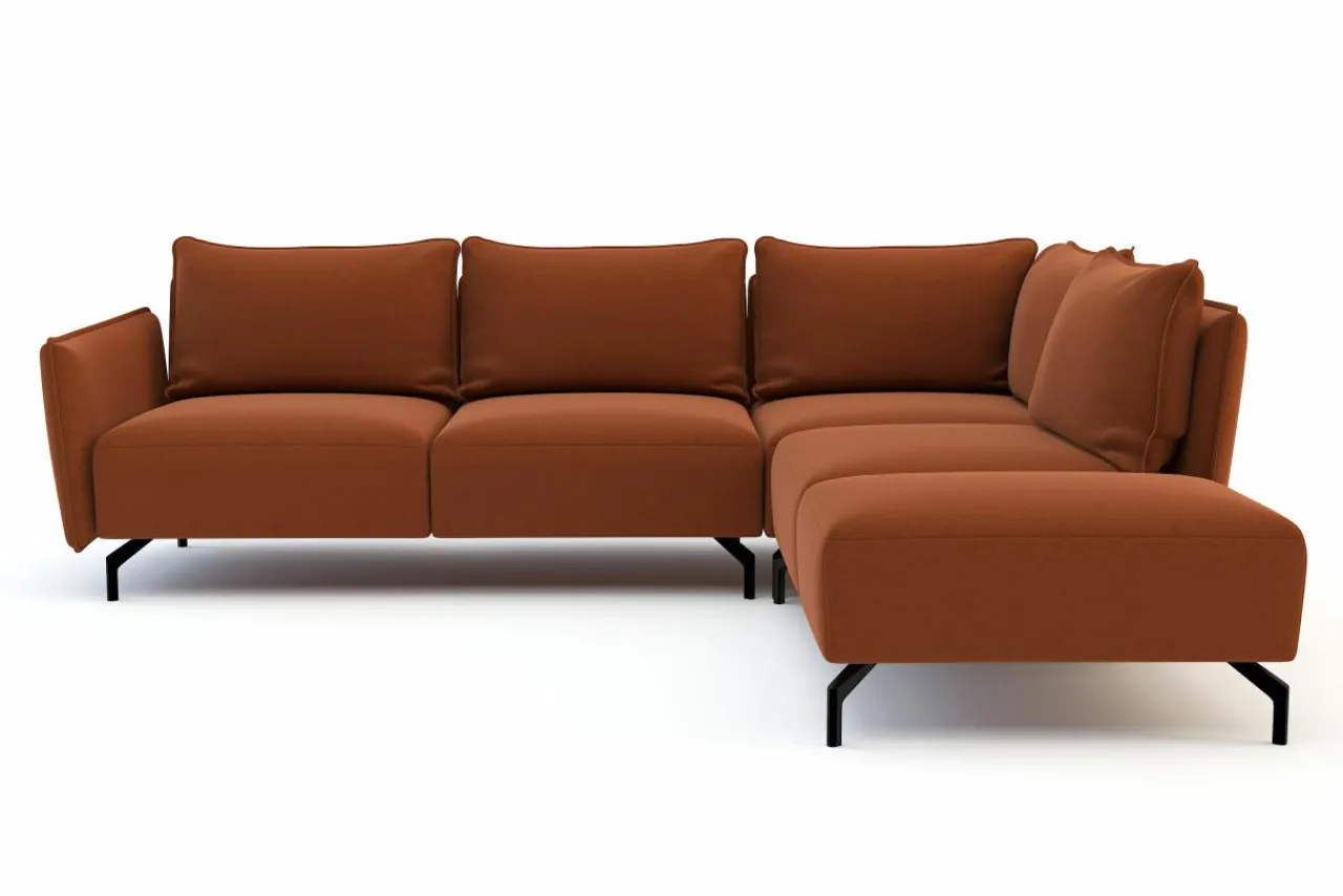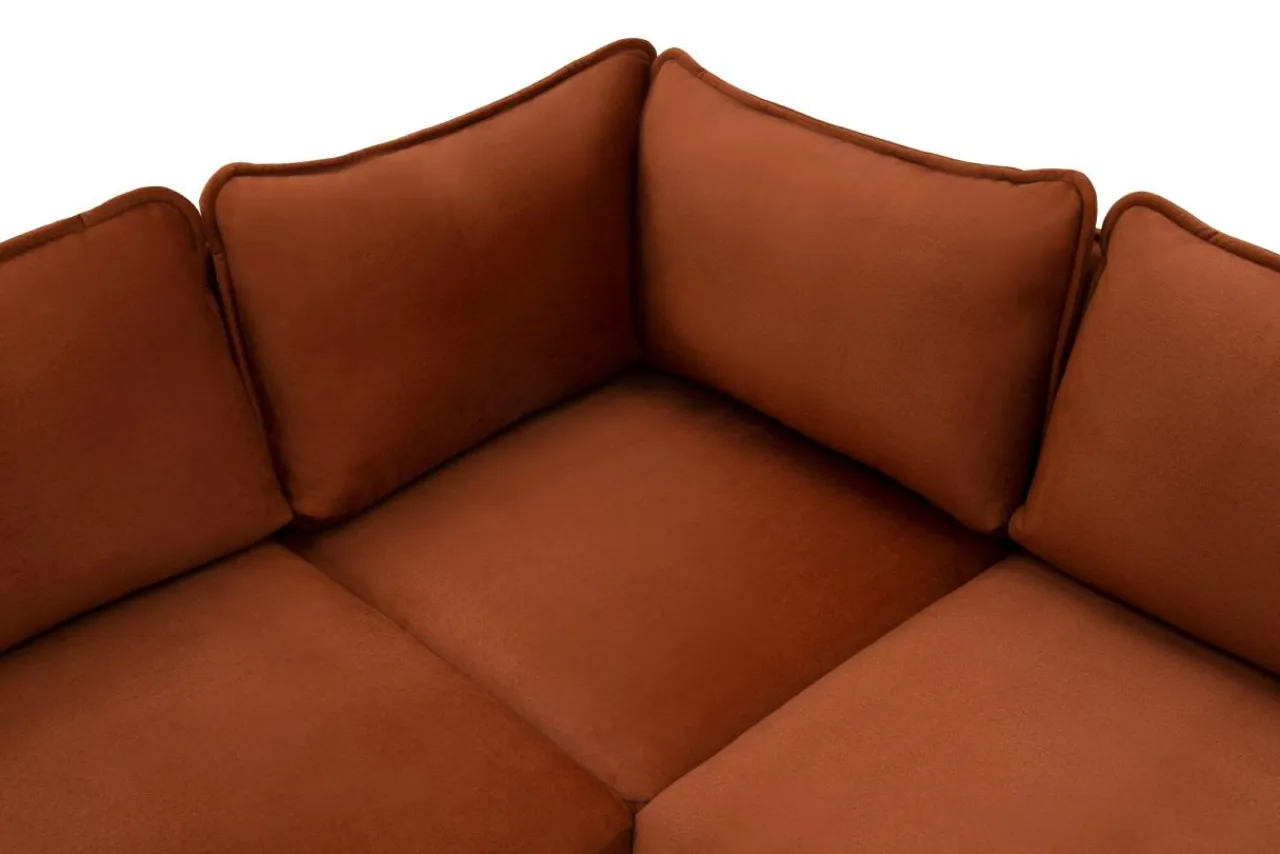 - Narożnik w odcieniu koloru pomarańczowego wprowadzi do wnętrza pozytywny nastrój.