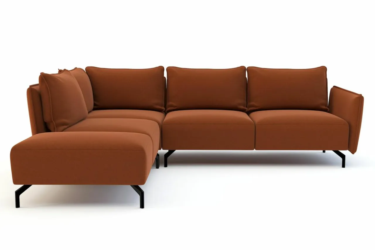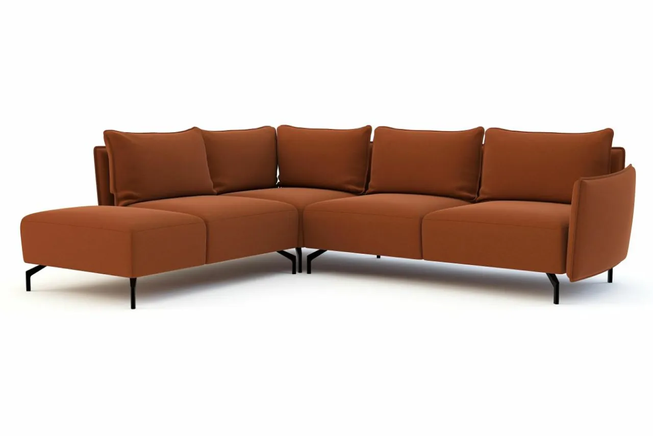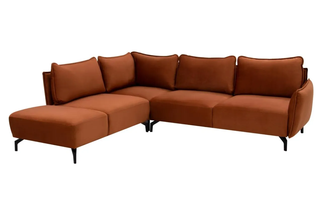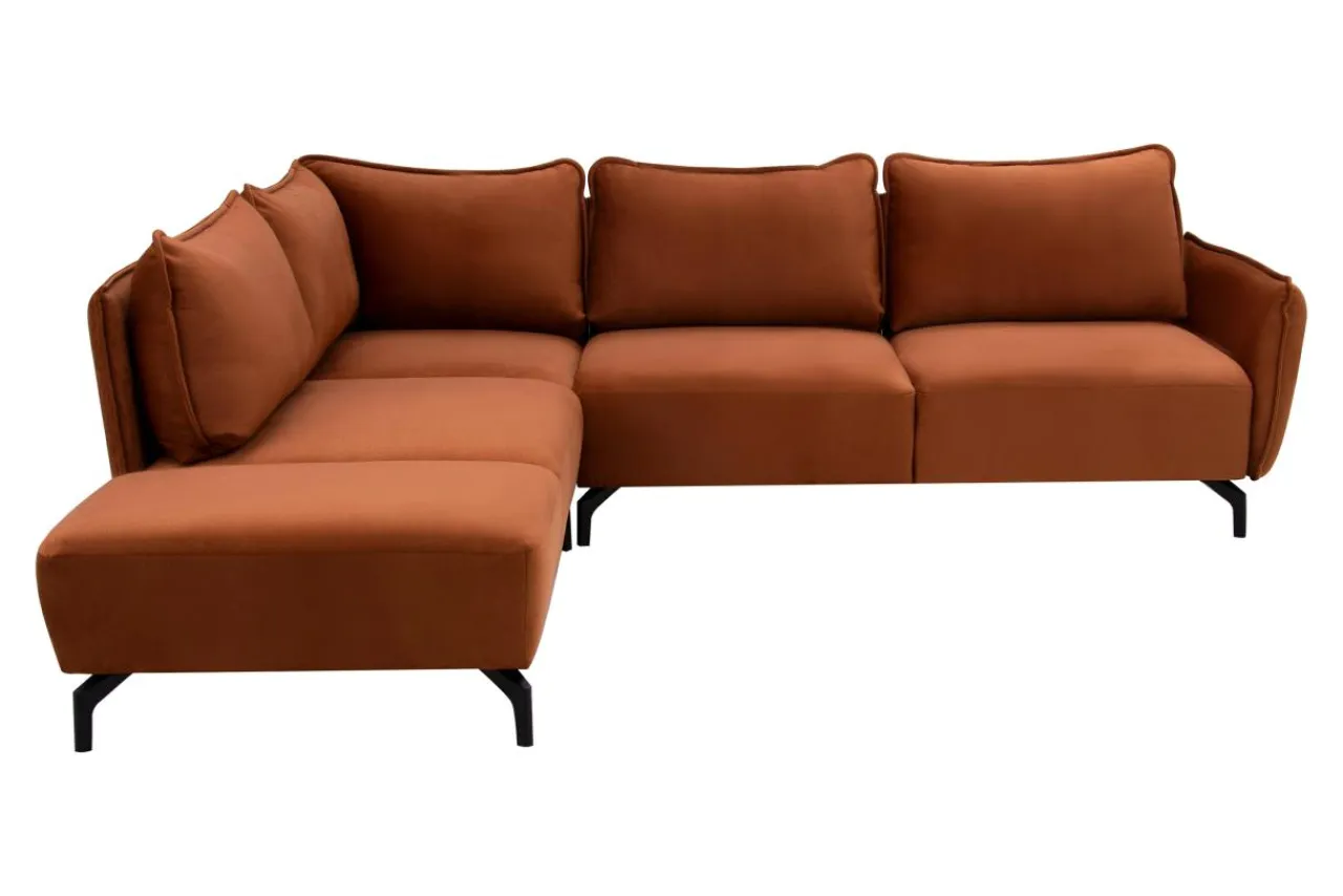 - Metalowe nóżki w czarnym kolorze świetnie pasują do nowoczesnego designu narożnika i dodają mu lekkości.