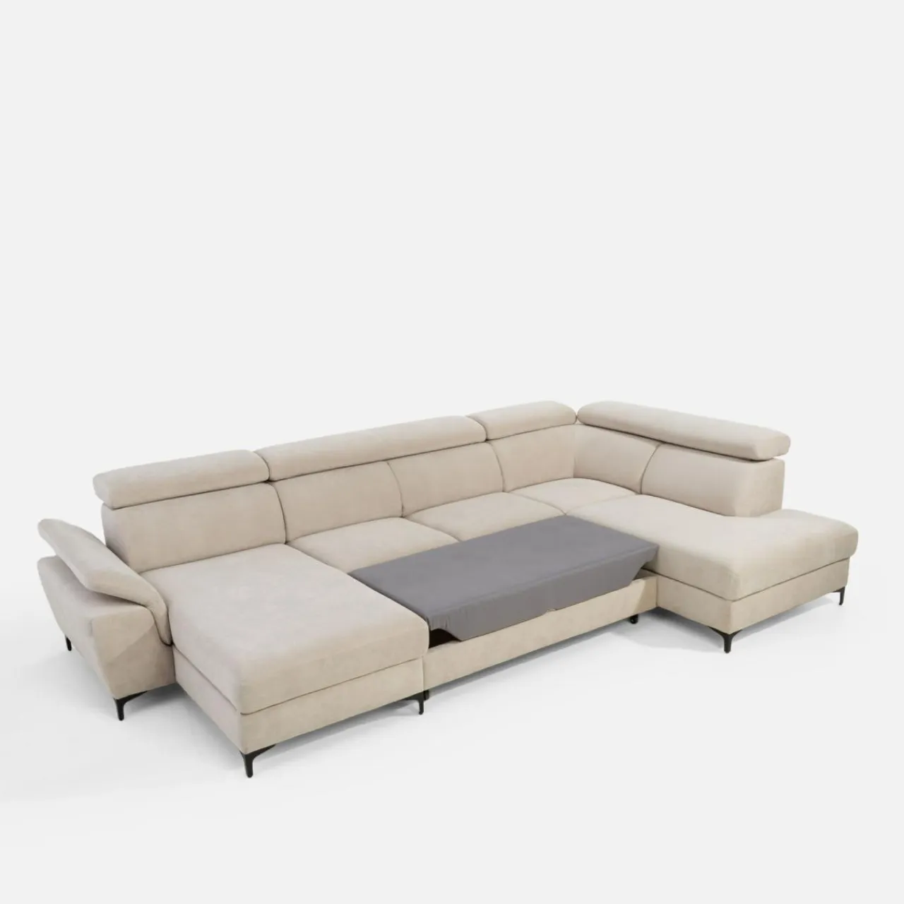 - Wysokie nóżki nadają lekkości, dzięki czemu narożnik nie przytłoczy wnętrza.