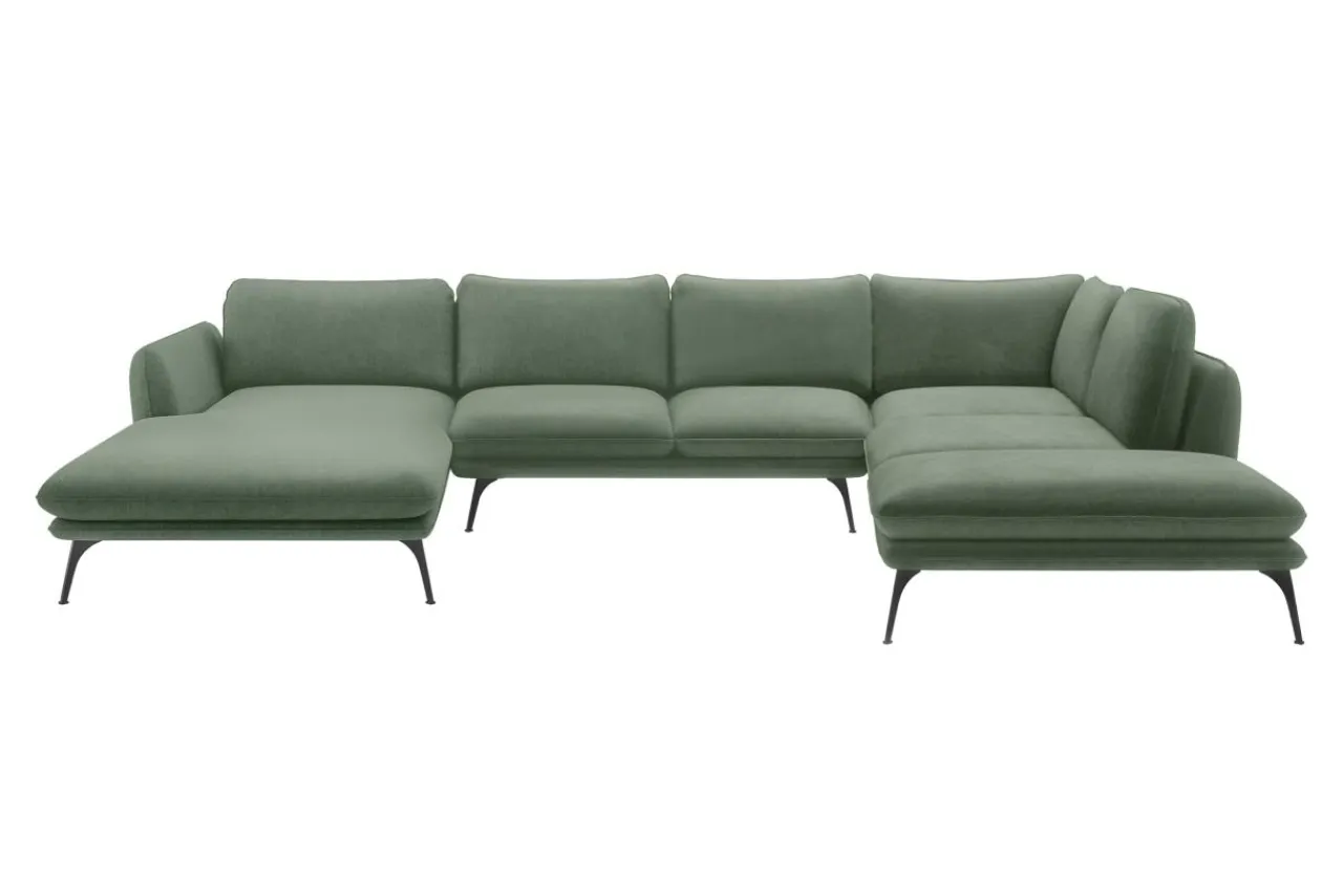 Kształt litery U zapewnia dużo miejsca – dodatkowe siedziska na bokach mebla przydadzą się dla gości.