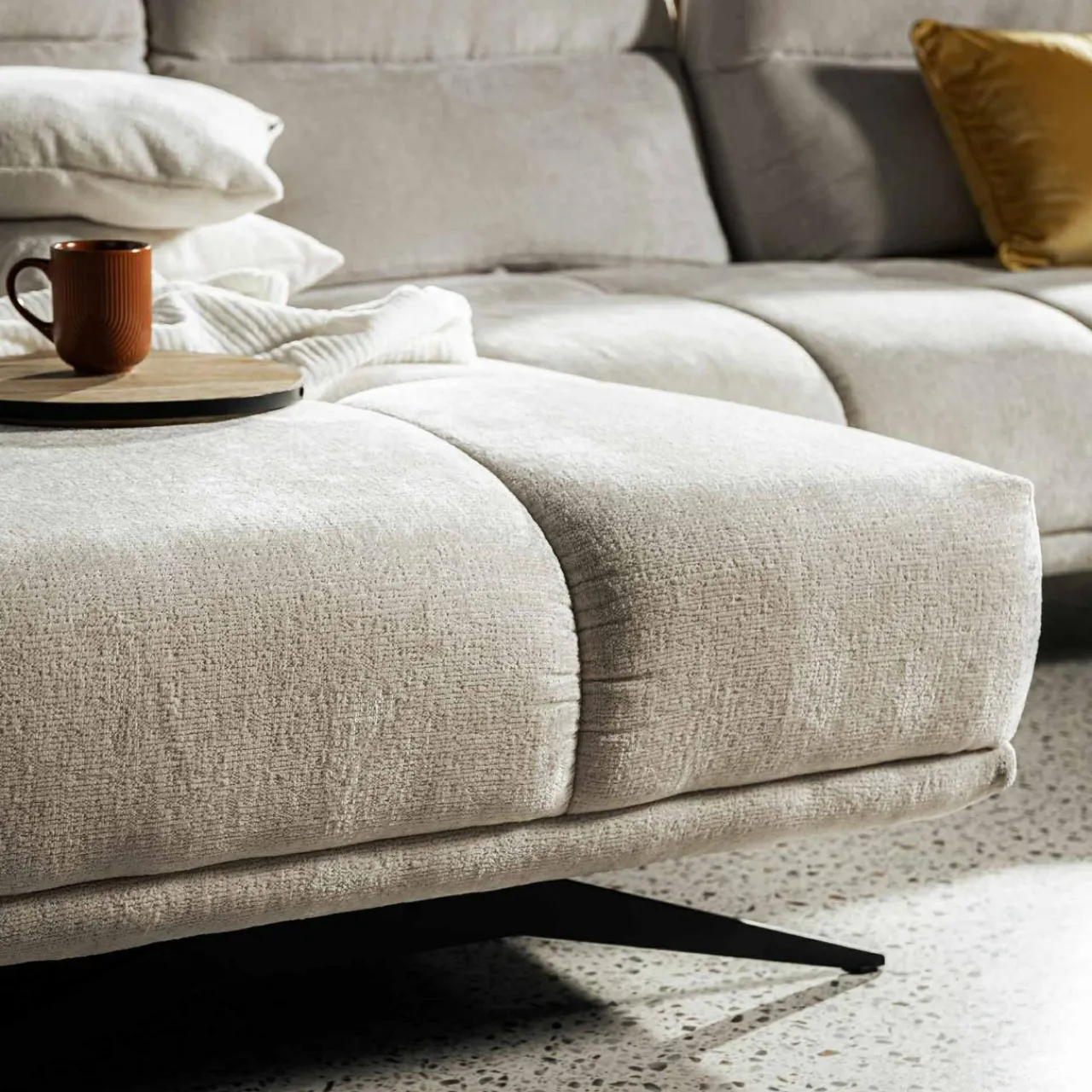 - Pluszowa miękkość: tkanina PERFECT HARMONY ma fakturę przypominającą szenil, co sprawia, że masz ochotę wtulić się w miękkie siedzisko.