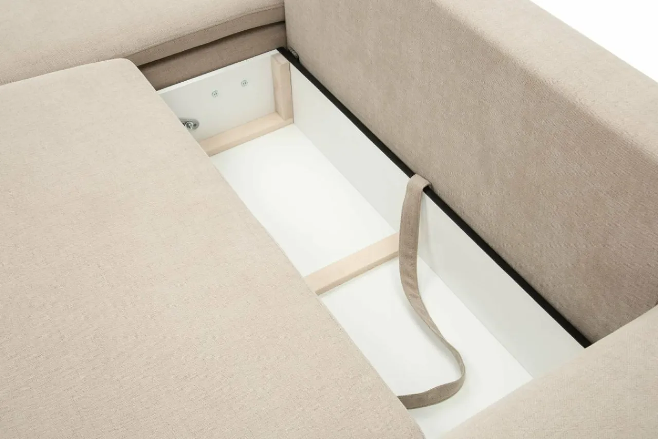 - Pojemnik pod siedziskiem pomieści pościel i dodatkowe koce lub ozdobne poduszki.