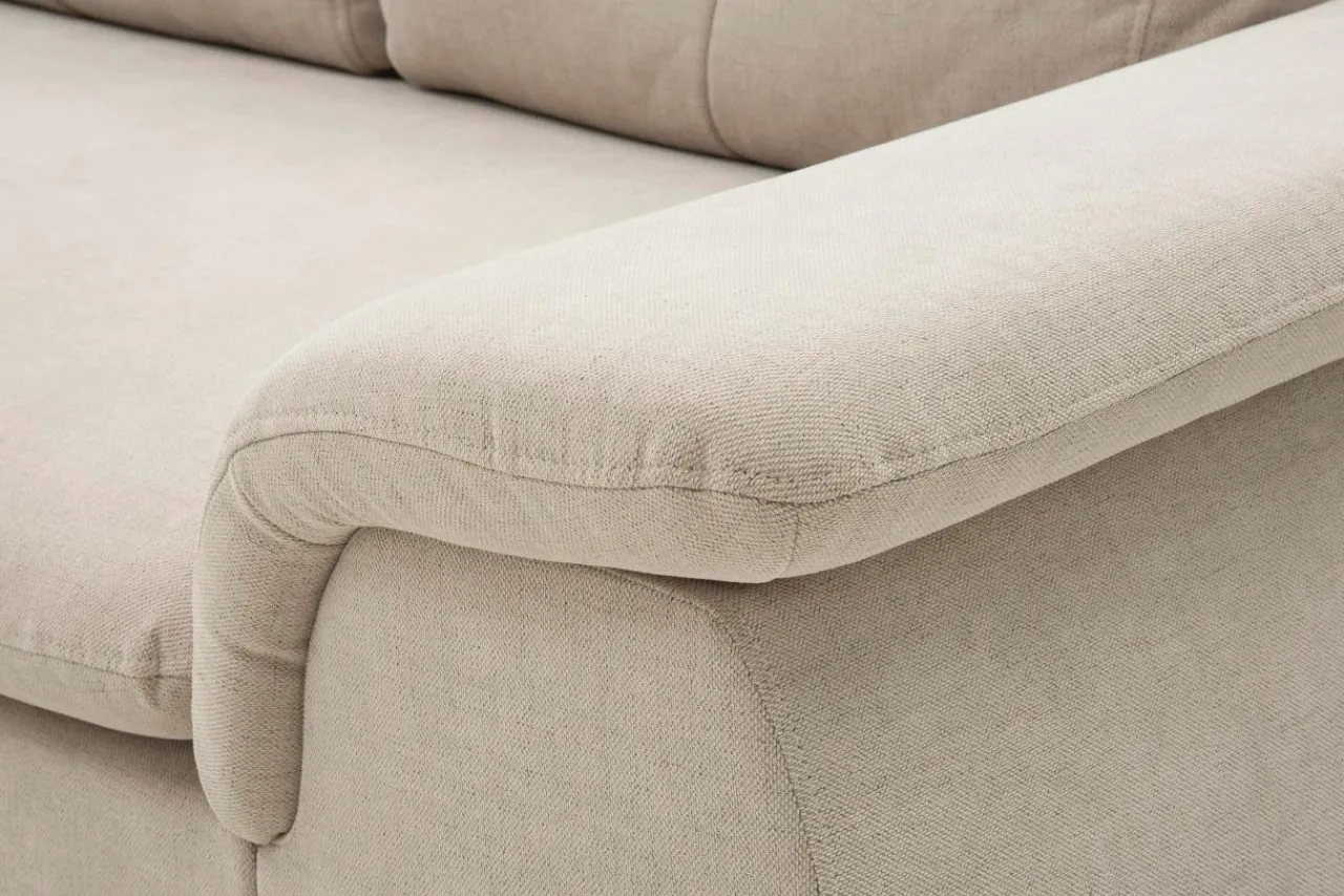 - Narożnik OZZY wykończono szenilową tkaniną MOLY w beżowym kolorze.