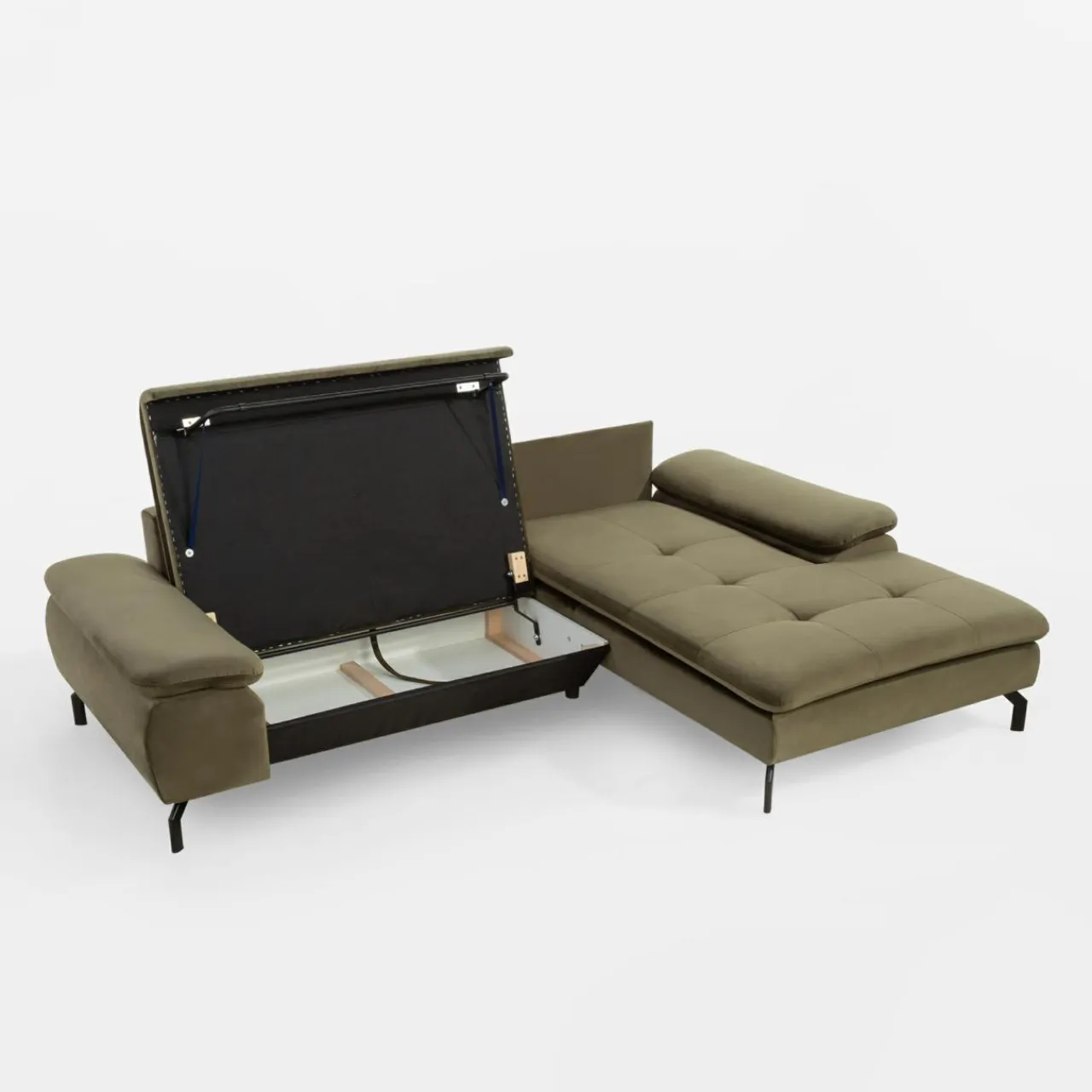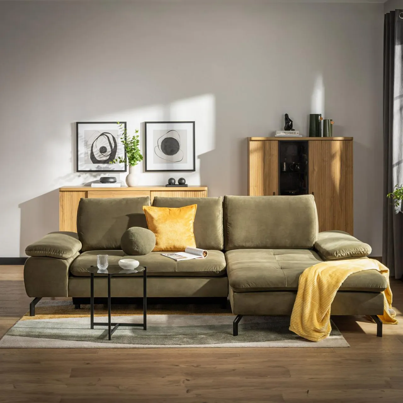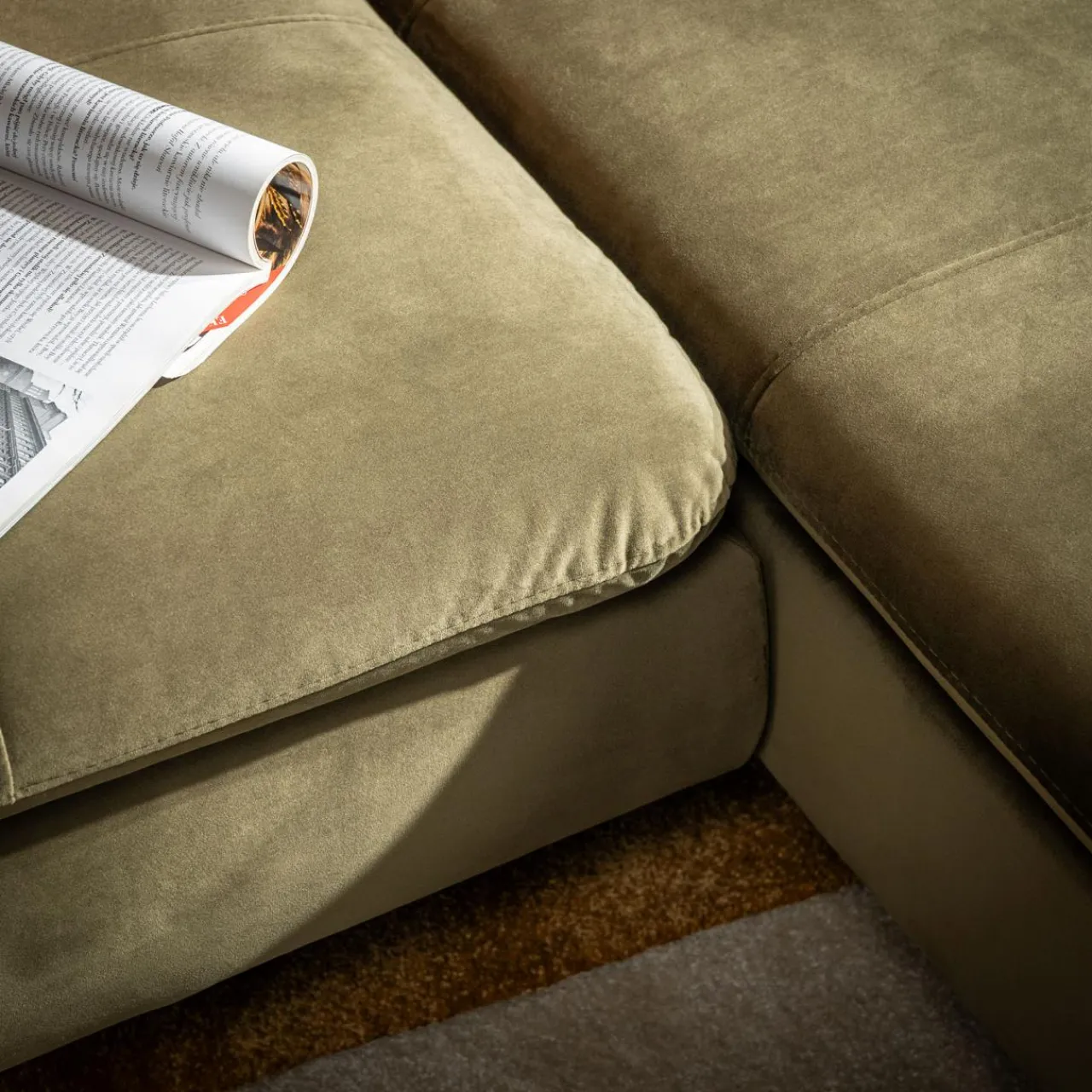 Na siedząco czy na leżąco? Wypoczywaj na narożniku VESPA w sposób, który Ci odpowiada. VESPA doskonale wpasuje się w różne wnętrza, wnosząc do naturalny odcień oliwkowej zieleni.