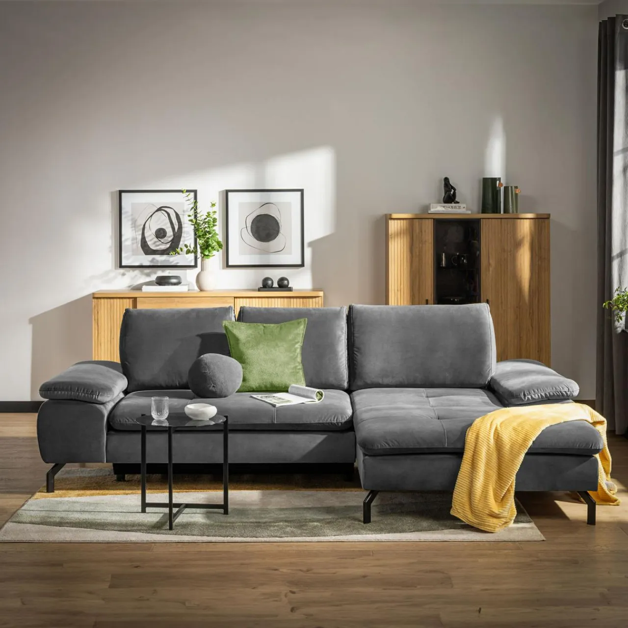 Na siedząco czy na leżąco? Wypoczywaj na narożniku VESPA w sposób, który Ci odpowiada. Aksamitny w dotyku welur umili popołudniowy relaks – aż trudno się oprzeć!