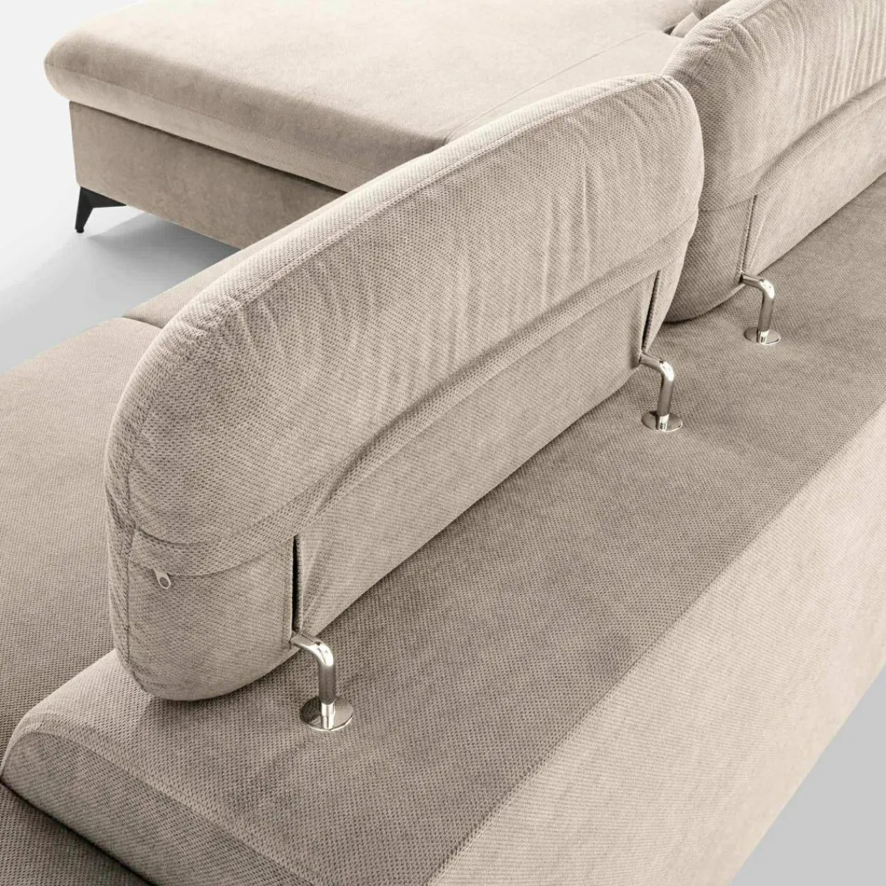 - Beżowy odcień tkaniny nadaje narożnikowi uniwersalny i elegancki charakter, który sprawdzi się zarówno w jasnych, jak i bardziej kontrastowych wnętrzach. Water Blocked, tkanina jest odporna na wchłanianie płynów, co ułatwia jej czyszczenie i utrzymanie w doskonałym stanie. Narożnik jest również przyjazny środowisku i bezpieczny w użytkowaniu, co czyni go idealnym rozwiązaniem także dla rodzin z dziećmi.