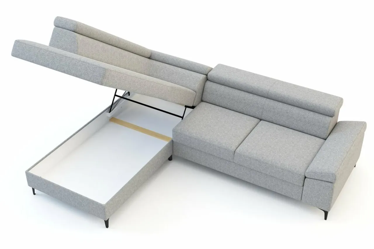 - Dzięki regulowanym zagłówkom możesz modyfikować wysokość narożnika między 71 a 84 cm – niech Twoi gości poczują się komfortowo.