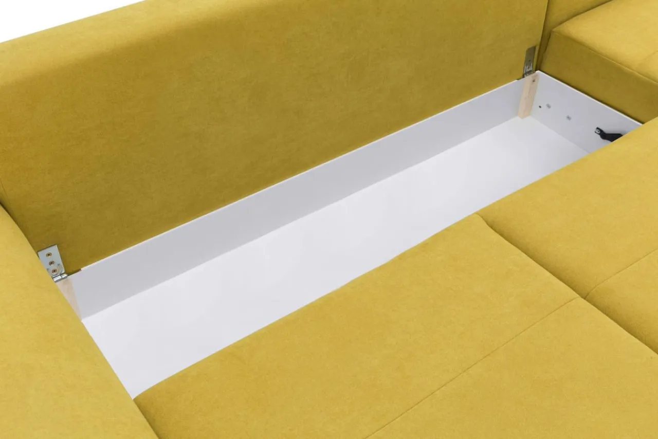 Pod siedziskiem znajduje się praktyczny pojemniki na pościel, zapasowe koce czy poduszki.