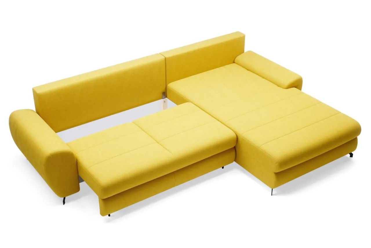 Narożnik posiada mechanizm DL – pozwalający na płynne i nie wymagające większego wysiłku rozłożenie. Otrzymamy posłanie o powierzchni spania 133×257 cm.
