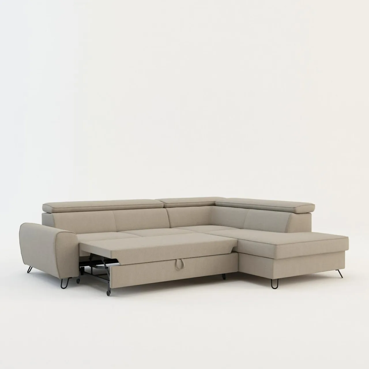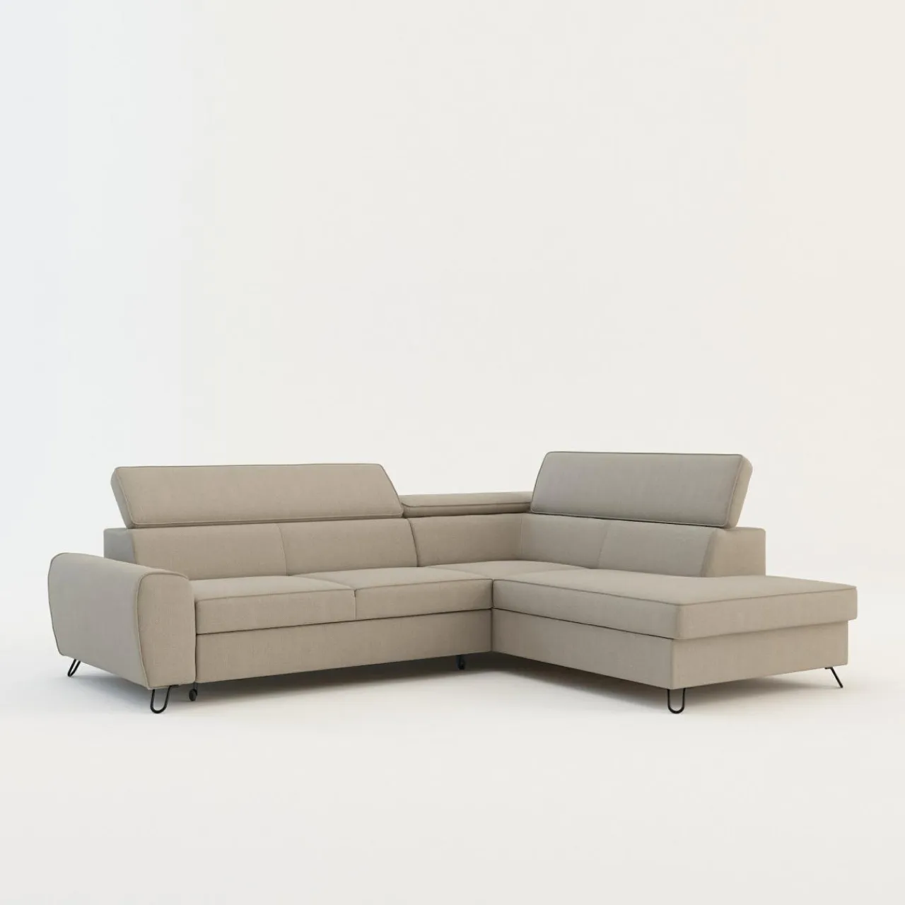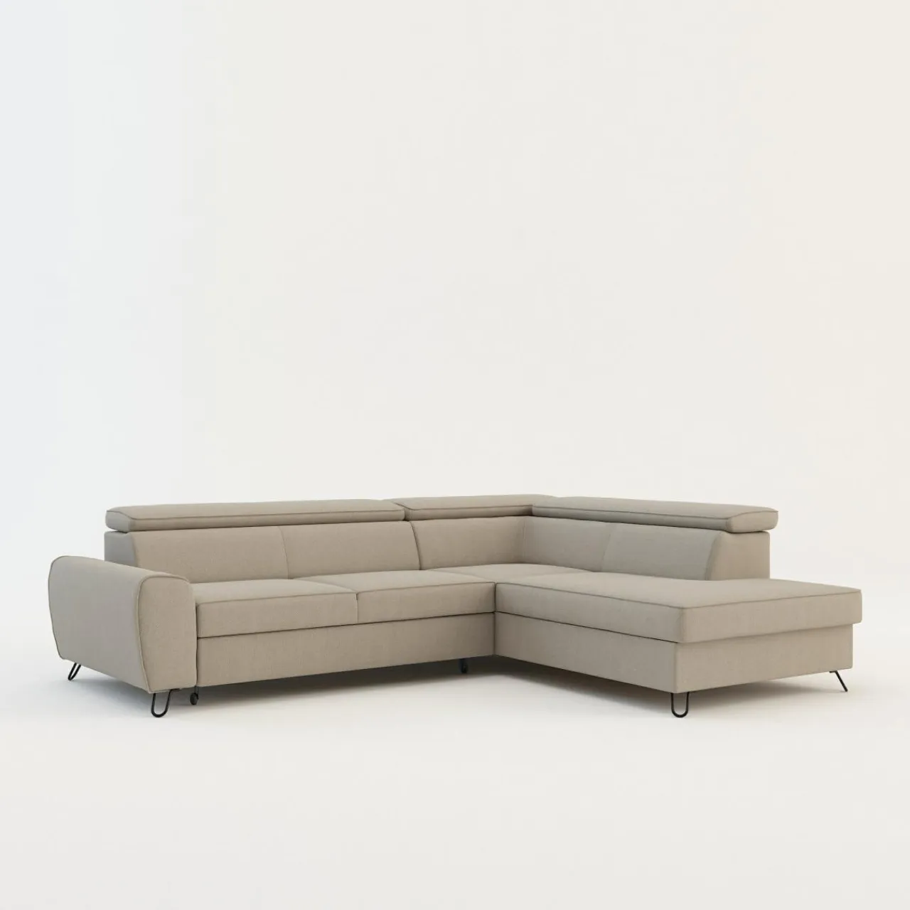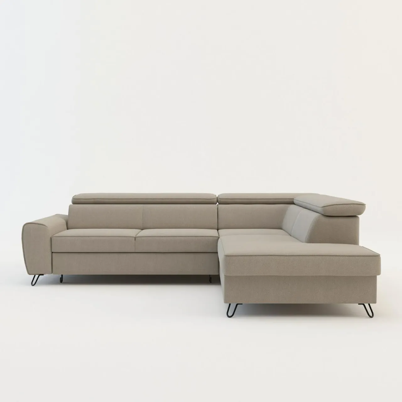 - Narożnik posiada 3 regulowane zagłówki na całej długości narożnika, dzięki czemu każdy z gości może usiąść równie komfortowo.