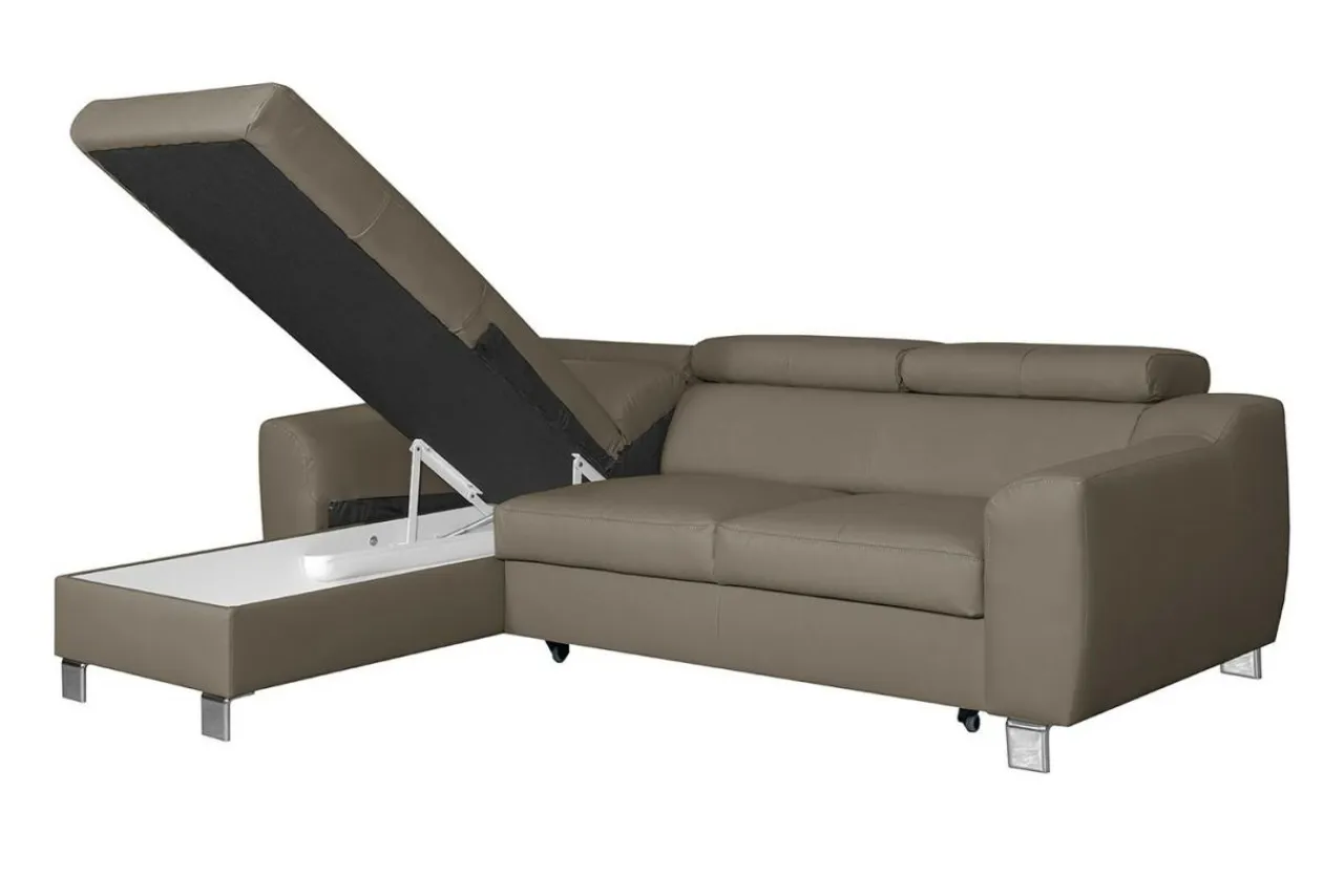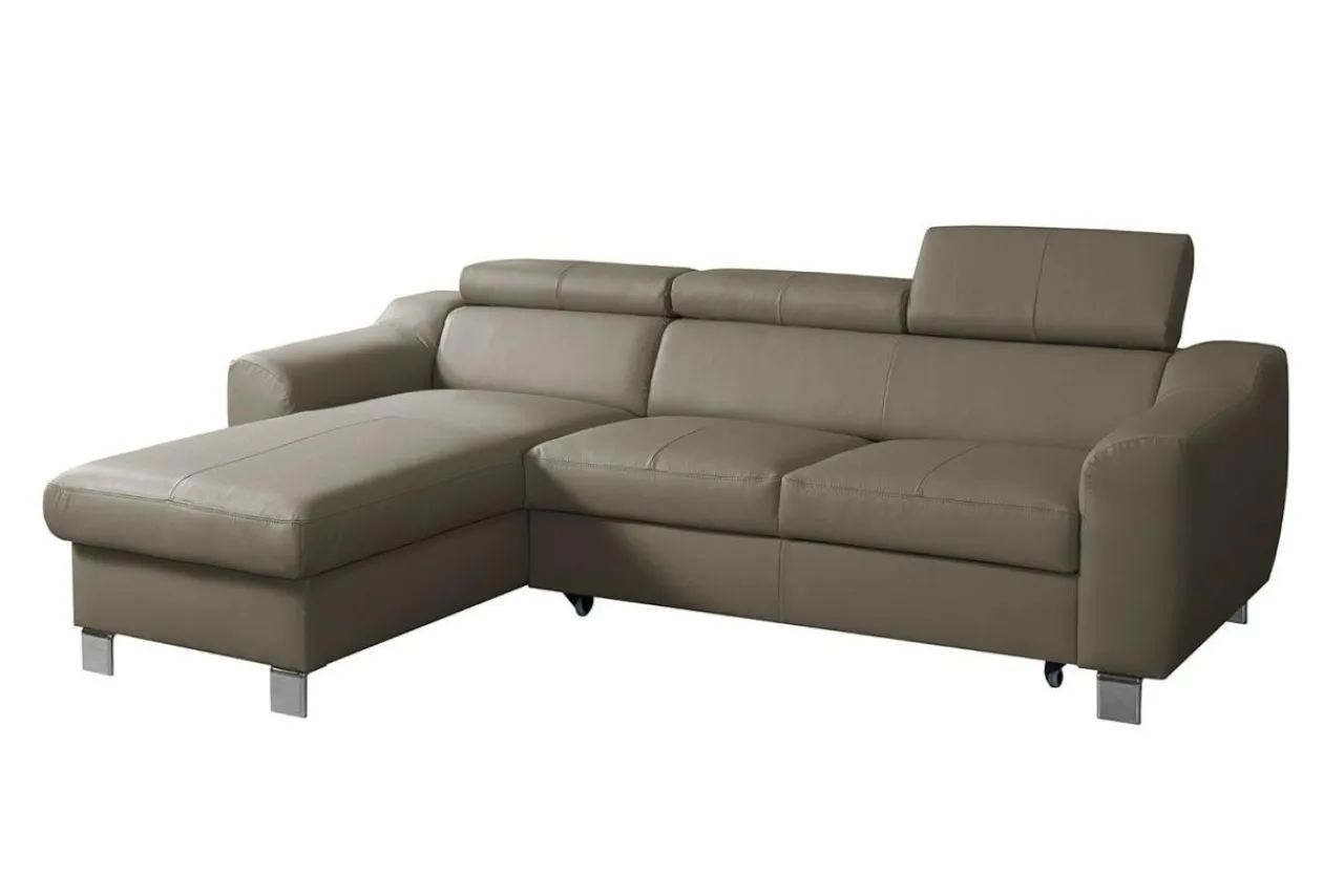 Elementy narożnika, z którymi mamy styczność siedząc, zostały wykończone skóra naturalną, pozostałe elementy obszyto skórą ekologiczną, dzięki temu cena jest atrakcyjniejsza, a wizualnie narożnik nie traci swoich walorów.