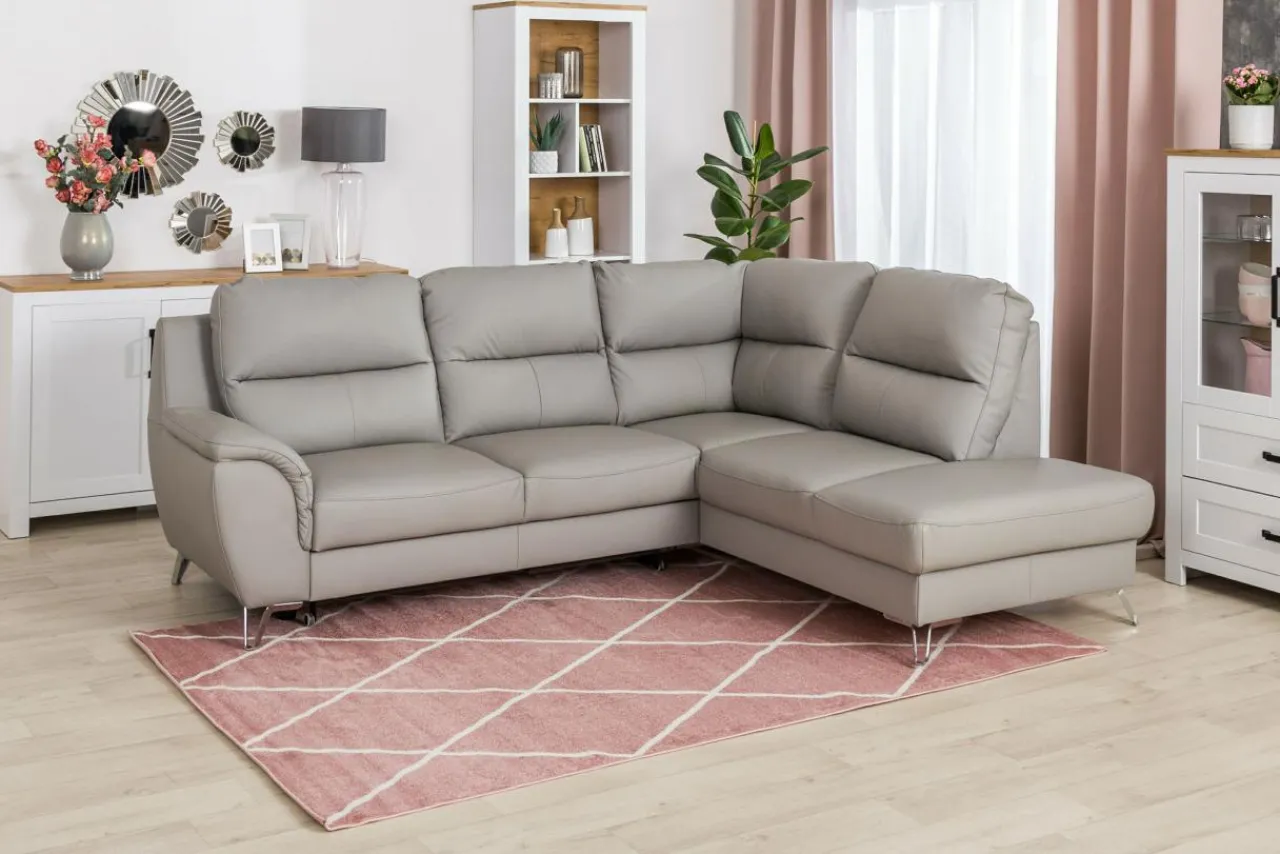 Rolę dekoracyjną w narożniku odgrywają metalowe, chromowane nóżki, a przede wszystkim skóra naturalna, która sprawia, że mebel wygląda bardzo dobrze.