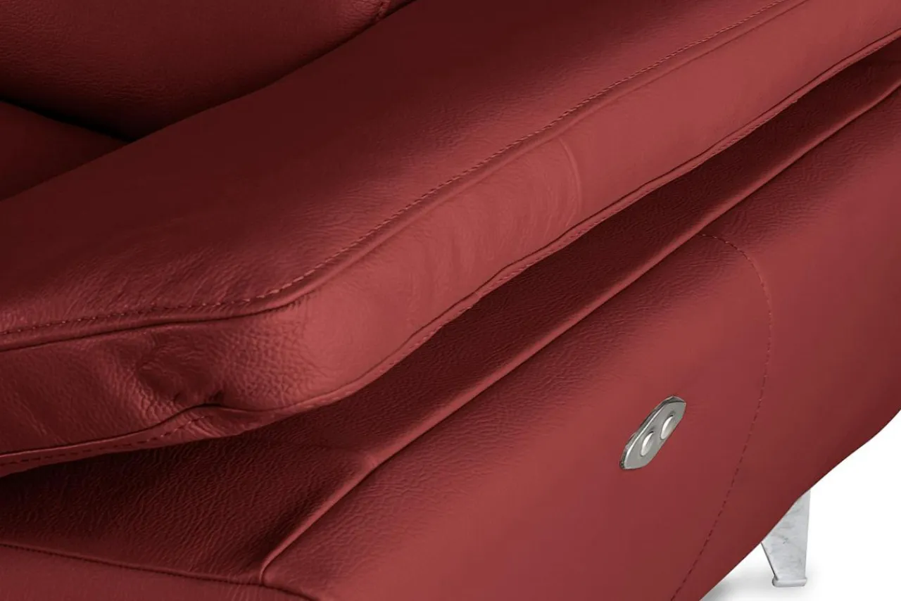 Narożnik została pokryty skórą naturalną z kolekcji DOLLARO w odcieniu RED. Metalowe nóżki podkreślają nowoczesny charakter narożnika i nadają mu nieco smukłości.