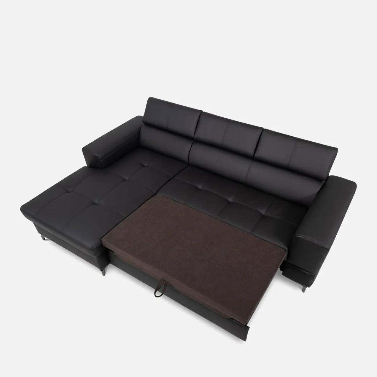Narożnik posiada wbudowany pojemnik. Możesz wykorzystać go do przechowywania pościeli, koców lub innych tekstyliów.