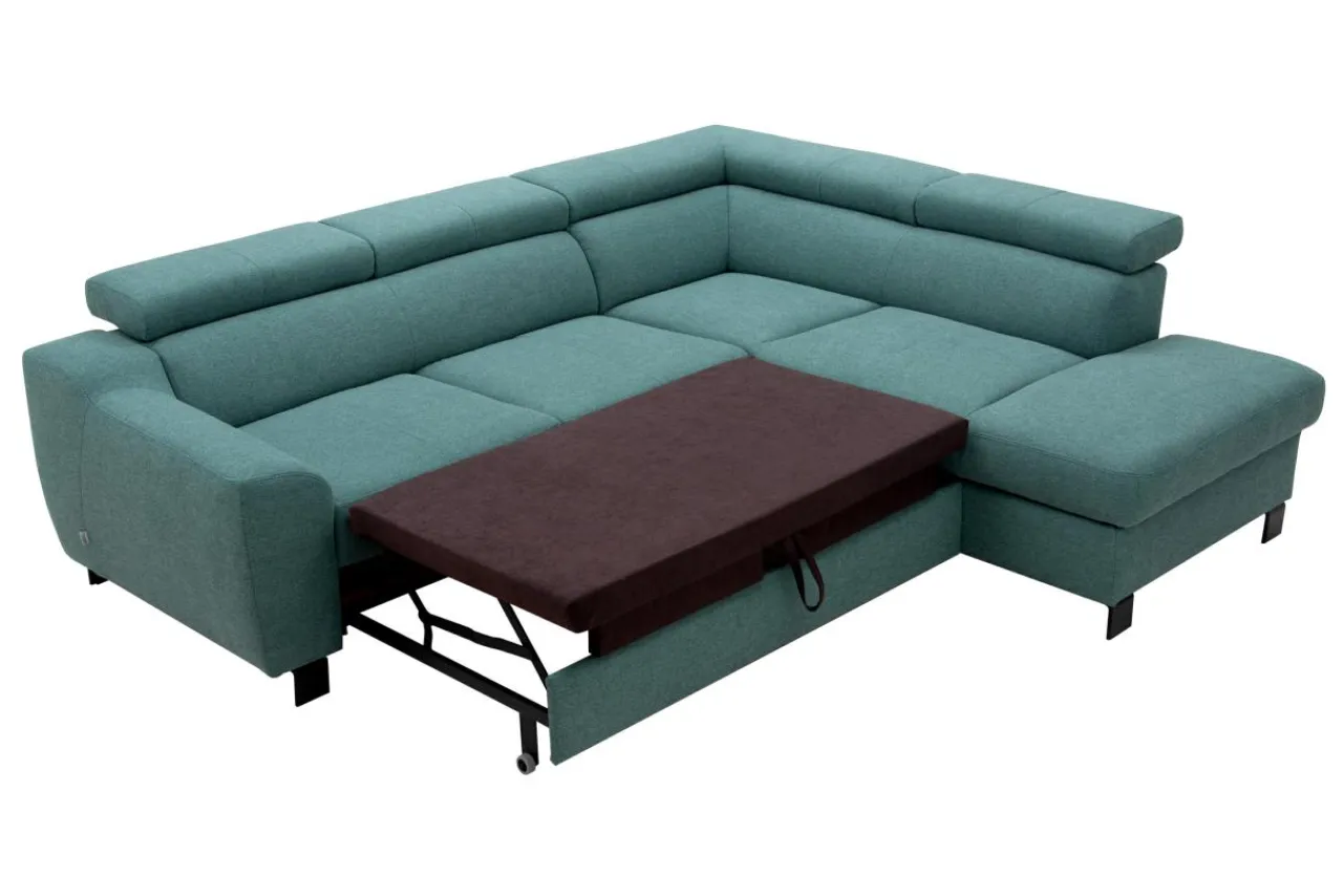 - Nóżki w kolorze czarnym optycznie podnoszą konstrukcję narożnika.