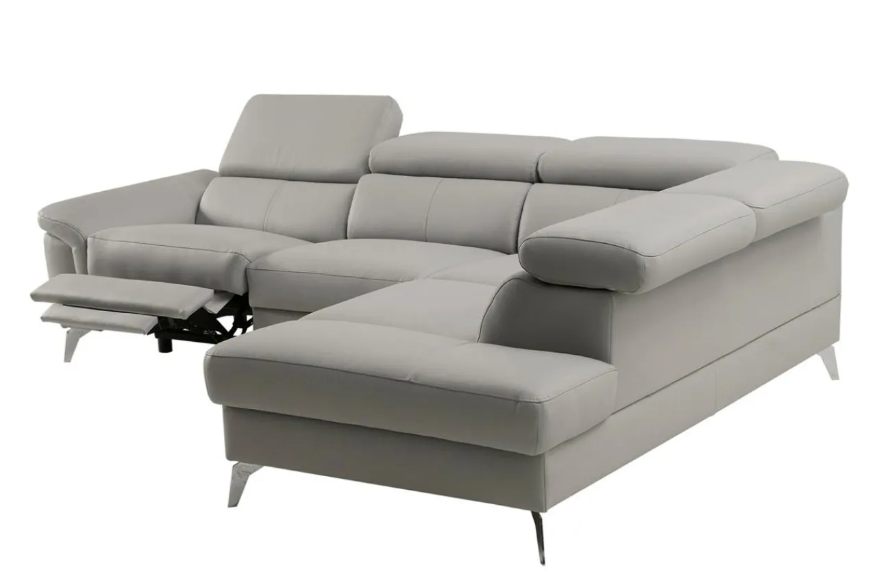 - Srebrne, chromowane nóżki odznaczają się minimalistyczną stylistyką, świetnie pasują do nowoczesnego designu narożnika i nadają mu lekkości.