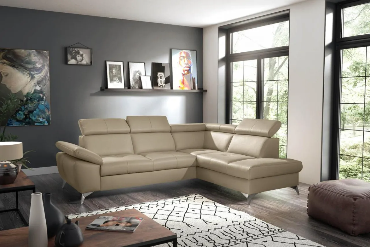 - Metalowe nóżki świetnie komponują się z beżową skórą MADRAS.