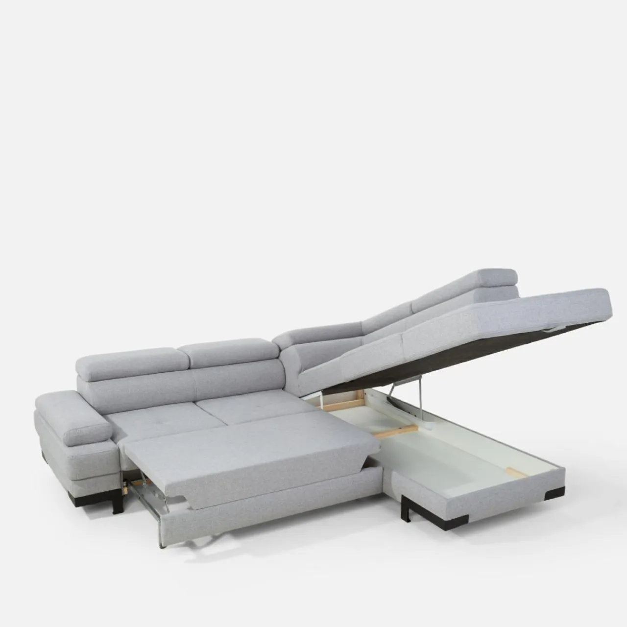 Stelaż pod siedziskiem wysuwamy i podnosimy za pomocą uchwytu. Mebel nie wymaga odsuwania od ściany. Idealny do okazjonalnego spania.